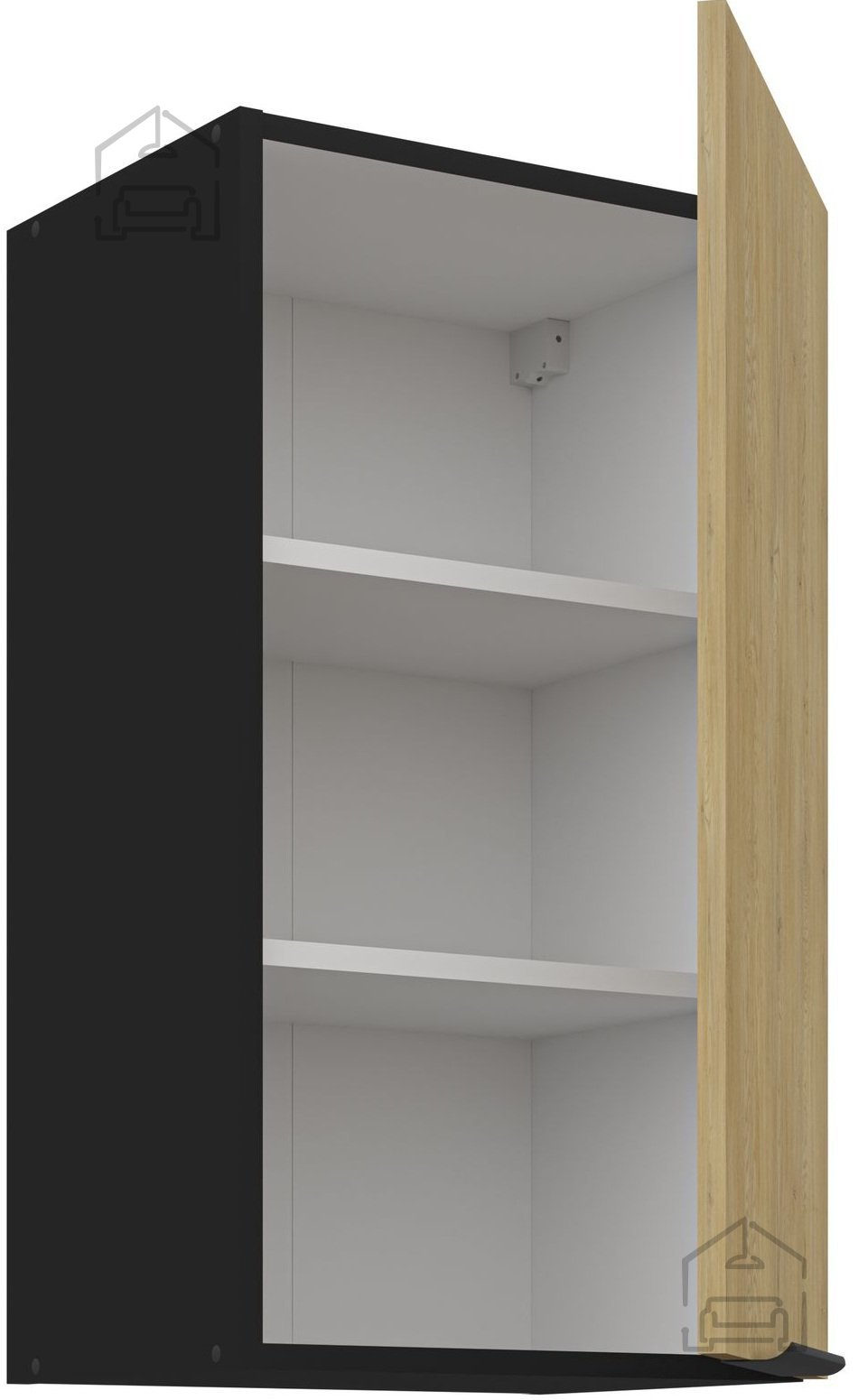 Die Küchenzeile Cremona zeichnet sich durch eine 16 mm starke laminierte Platte aus, die Haltbarkeit und eine lange Lebensdauer gewährleistet. Die Fronten in der Farbe Cremona-Eiche verleihen einen Hauch von natürlichem Charme, während der schwarze Korpus für eine raffinierte und moderne Ästhetik sorgt. Diese Farbkombination bringt ein warmes Gefühl in jedes Zuhause.
