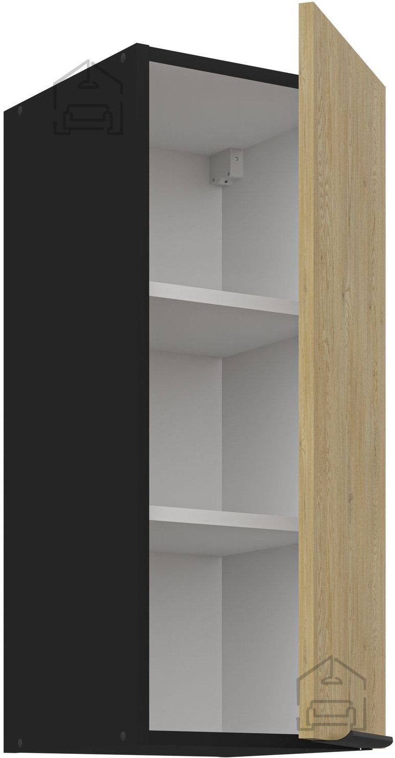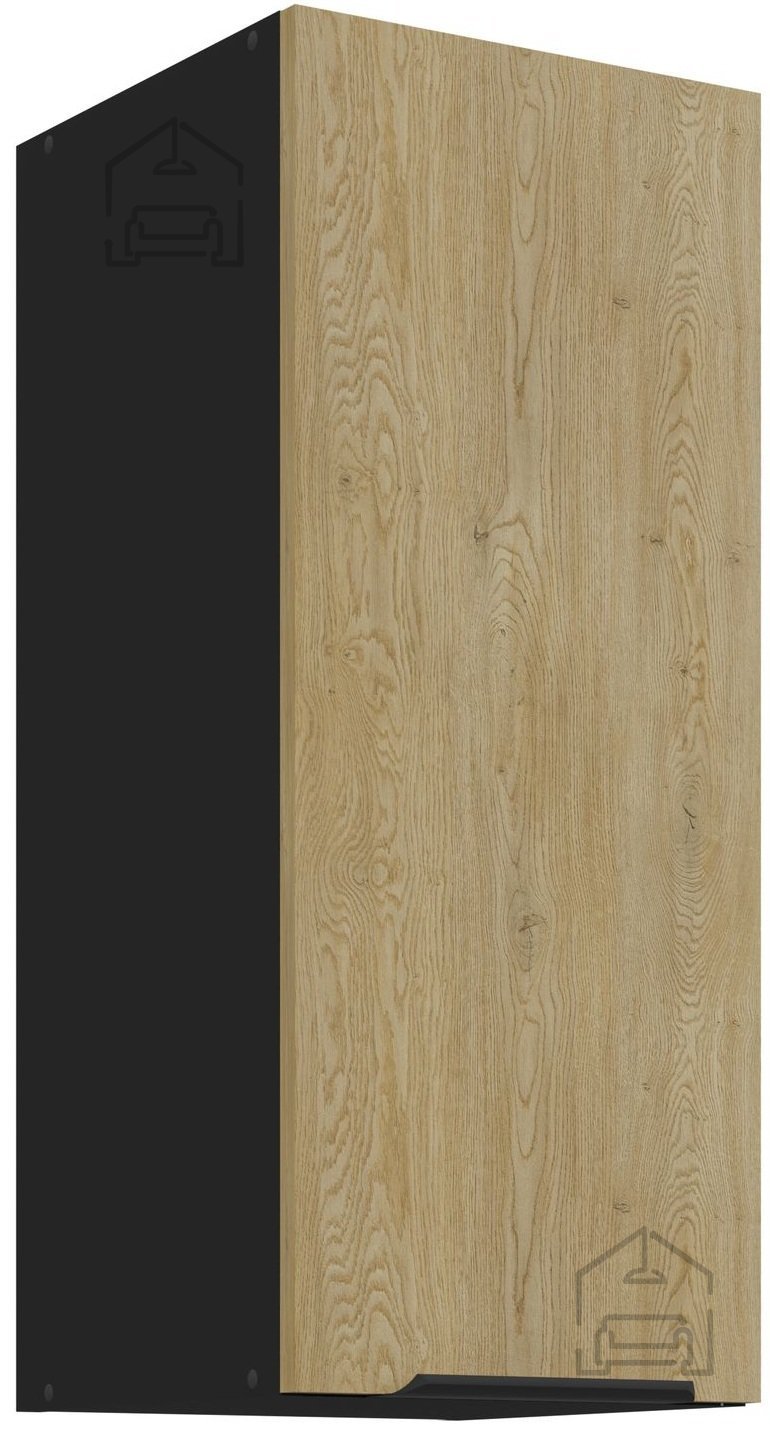 Die Küchenzeile Cremona verfügt über ein Material aus 16 mm starker laminierter Platte, was Langlebigkeit und eine lange Lebensdauer gewährleistet. Die Fronten in der Farbe Cremona-Eiche verleihen einen Hauch von natürlichem Charme, während der schwarze Korpus für eine raffinierte und moderne Ästhetik sorgt. Diese Farbkombination bringt ein warmes Gefühl in jedes Zuhause.