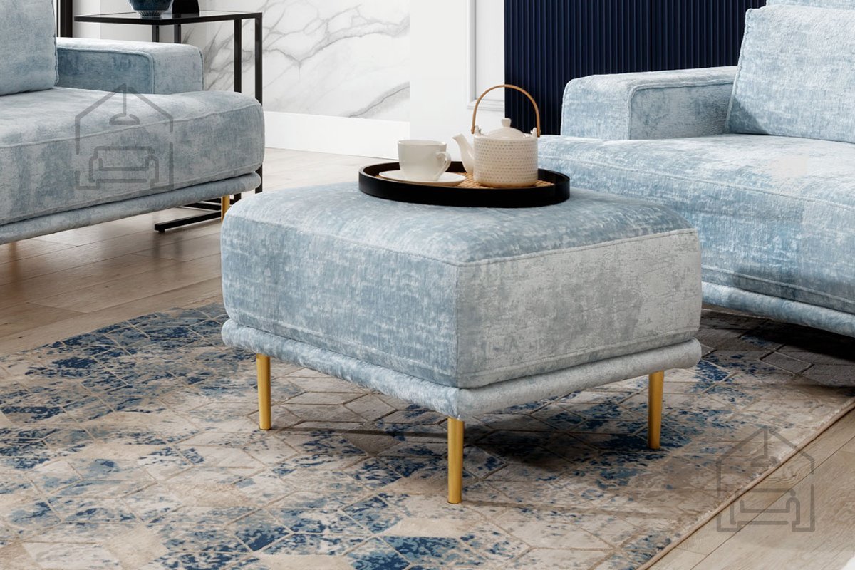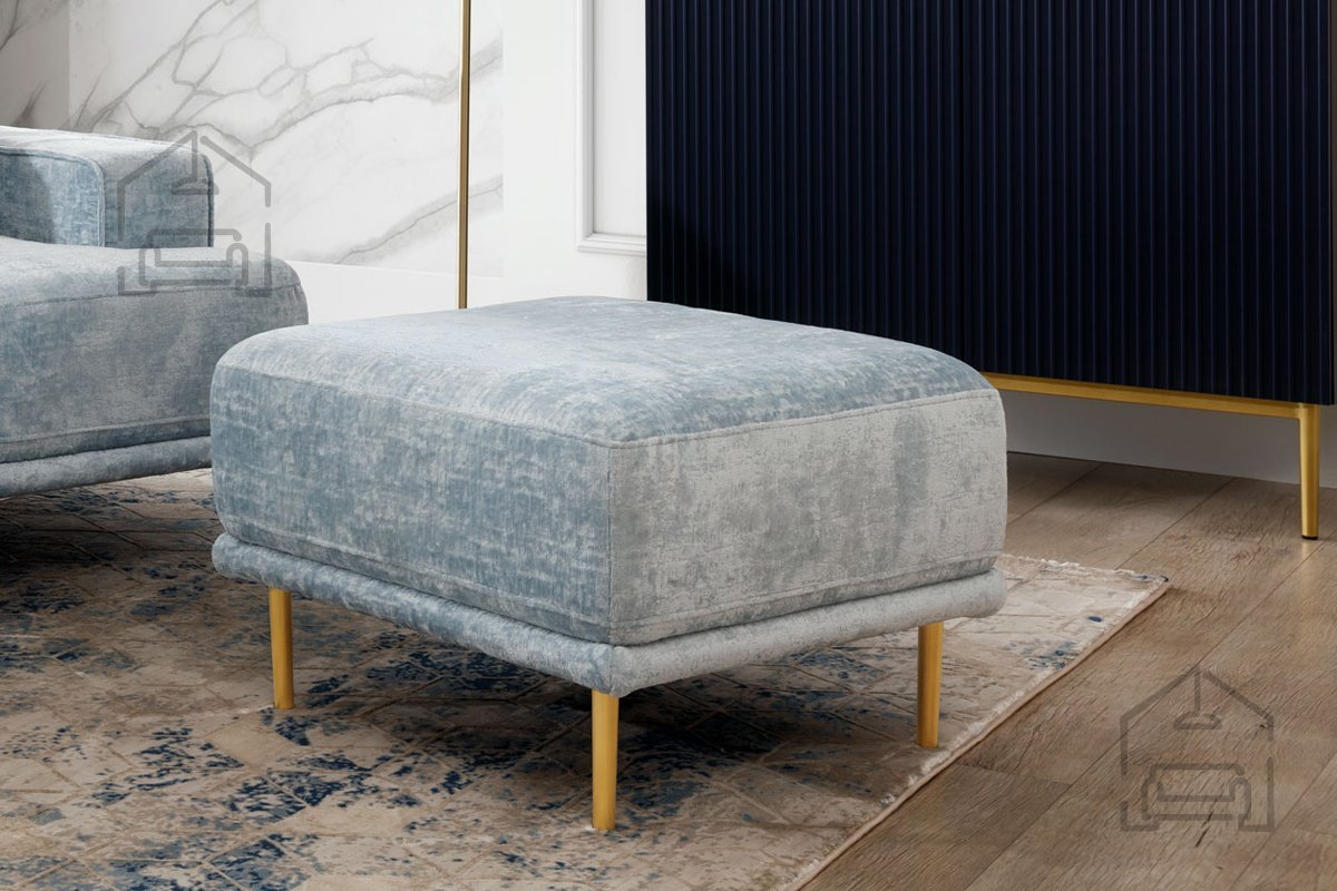Der Hocker Nicole ist aus hochwertigem Holz und Spanplatten gefertigt, was Stabilität und Langlebigkeit garantiert. Er ist mit dem Stoff Miu 2052 gepolstert, der nicht nur abriebfest ist, sondern auch einen Hauch von Raffinesse verleiht. Die Metallfüße, die in goldenen oder schwarzen Tönen erhältlich sind, tragen zu einem modernen Look bei und sorgen für Stabilität. Mit einer Höhe von 15 cm bieten sie zudem eine optimale Sitzhöhe.