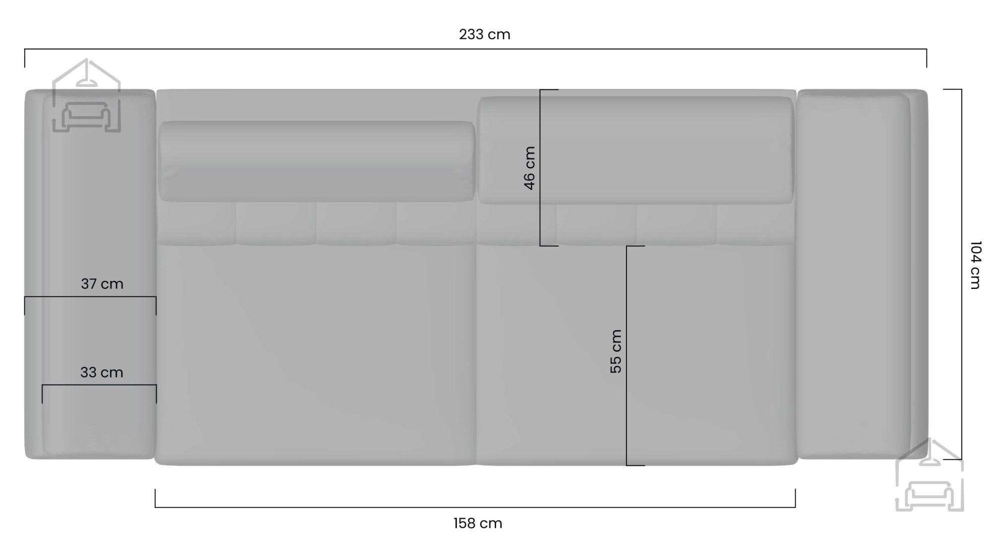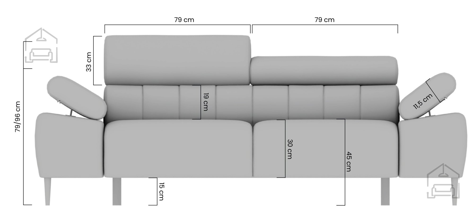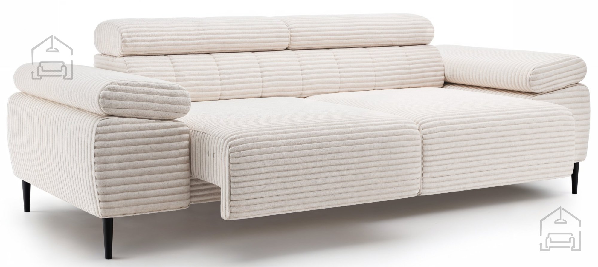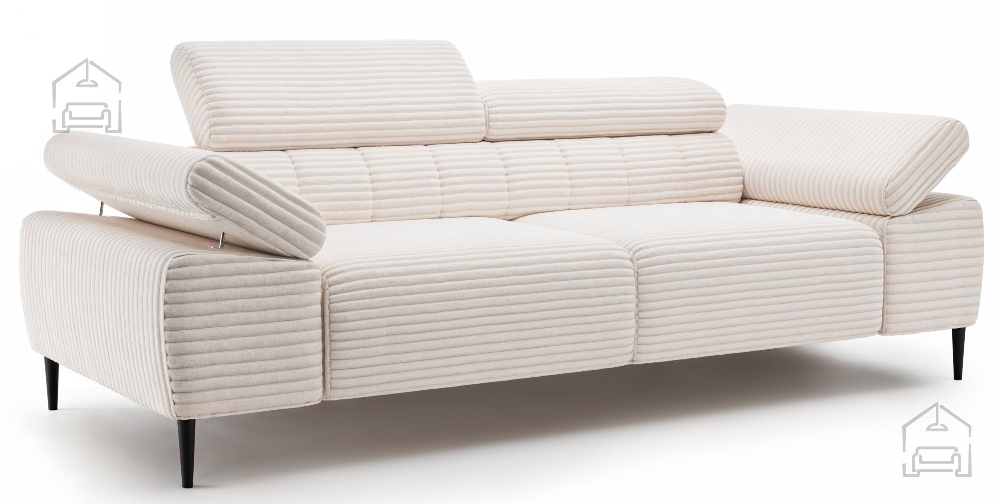 Die bei der Herstellung von Sofas und Polstergarnituren verwendeten Materialien sind verschiedene Arten von Polyurethanschaum, Synthepon, Viscolatex usw. Es handelt sich um Produkte mit einem hohen Kompressions- und Elastizitätskoeffizienten, daher behält sich der Hersteller das Recht auf eine negative und positive Toleranz von +/- 2 % in Breite und Länge vor.