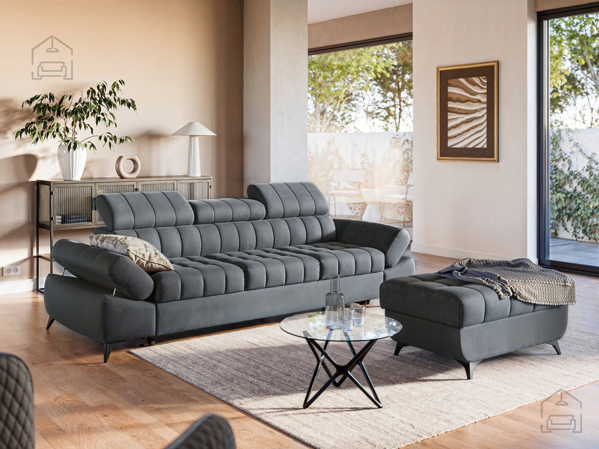Eine der wichtigsten Stärken des Sofas Valoris ist seine Flexibilität. Dank verstellbarer Kopfstützen und Armlehnen kann sich jeder Benutzer seinen persönlichen Komfort einstellen. Der Dolphin-Mechanismus ermöglicht eine schnelle und einfache Umwandlung in ein bequemes Bett mit einer Liegefläche von 186x124 cm – ideal für Gäste oder entspannende Nachmittagspausen.