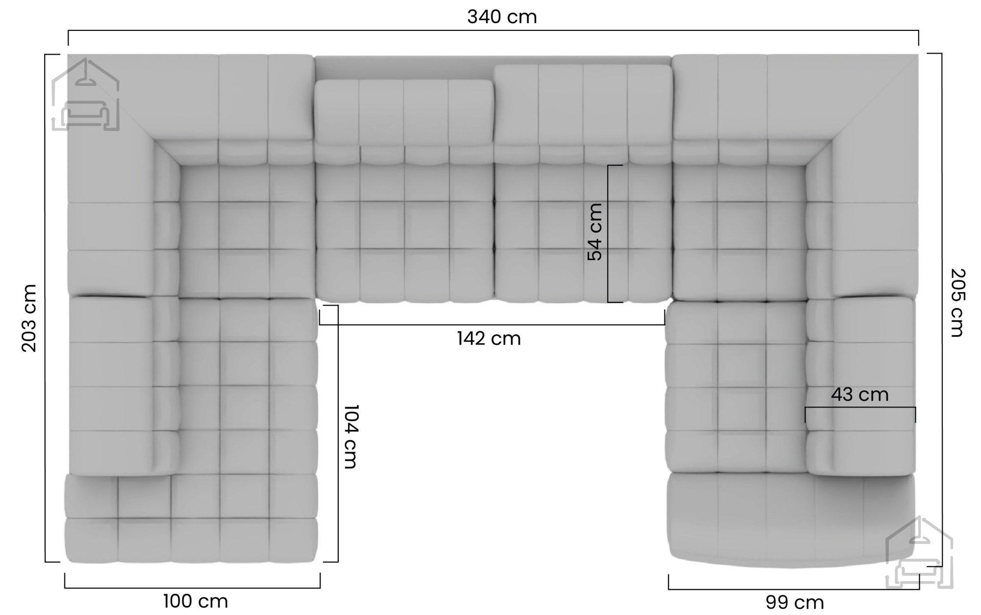 Die bei der Herstellung von Sofas und Wohnlandschaften verwendeten Materialien sind verschiedene Arten von Polyurethanschaumstoffen, Synthepon, Viskolatex usw. Es handelt sich um Produkte mit einem hohen Kompressions- und Elastizitätskoeffizienten, daher behält sich der Hersteller das Recht auf eine negative und positive Toleranz von +/- 2% in Breite und Länge vor.