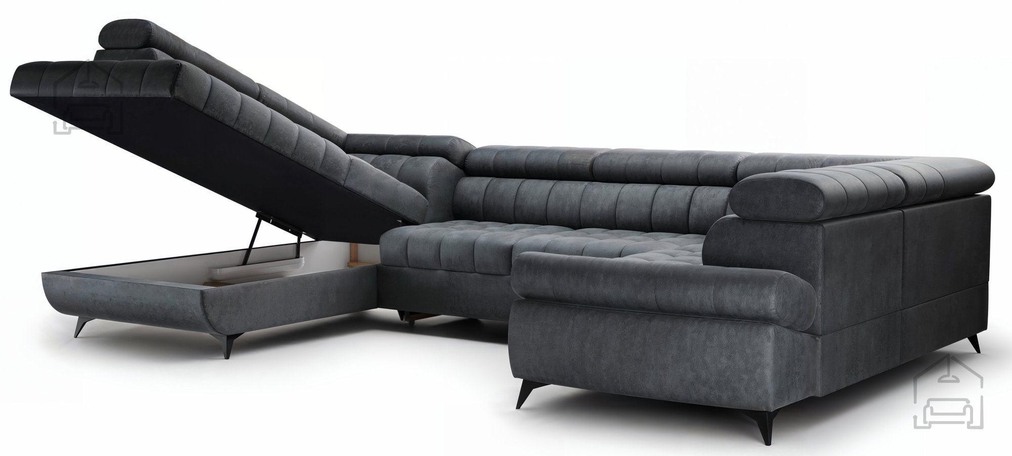 Einer der wichtigsten Vorteile der Wohnlandschaft Valoris U ist ihr innovativer Dolphin-Mechanismus, der eine einfache Umwandlung in ein komfortables Bett mit den Maßen 248x124 cm ermöglicht. Ganz gleich, ob Sie Gäste erwarten oder einfach zusätzlichen Raum zur Entspannung genießen möchten – diese Funktion ist auf Ihre Bedürfnisse zugeschnitten.