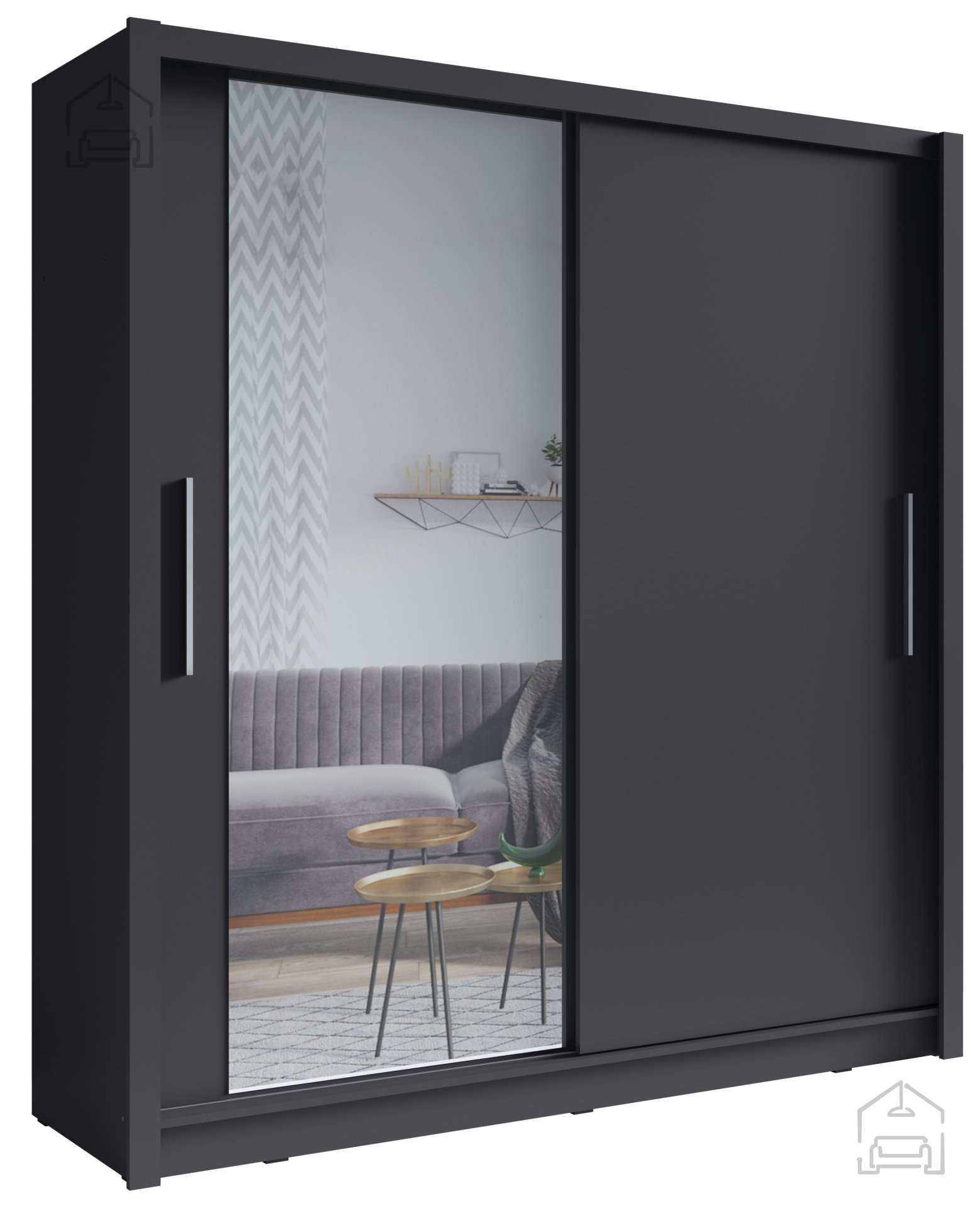 Bringen Sie einen Hauch von modernem Design und Praktikabilität in Ihr Zuhause mit dem Kleiderschrank Baku 10 mit Schiebetüren in eleganter Graphitfarbe. Dieser Schrank ist nicht nur ein Möbelstück, sondern ein wahres Kunstwerk, das ästhetische Attraktivität mit funktionalem Design vereint. Hergestellt aus hochwertiger laminierter Platte, garantiert er Langlebigkeit und Widerstandsfähigkeit gegen den täglichen Gebrauch.