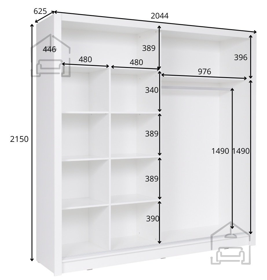 Der Kleiderschrank Bari XII wird in der renommierten Fabrik Meblosiek in Polen hergestellt, was höchste Qualität und Langlebigkeit des Produkts garantiert. Die Maße 205x62x215 cm bieten ausreichend Platz zur Aufbewahrung all Ihrer Kleidung, Schuhe und Accessoires und sorgen gleichzeitig für Ordnung und Übersichtlichkeit in Ihrem Raum. Die Schiebetüren ermöglichen es, den Schrank auch in kleineren Räumen problemlos zu platzieren, da kein zusätzlicher Platz zum Öffnen klassischer Türen benötigt wird.
