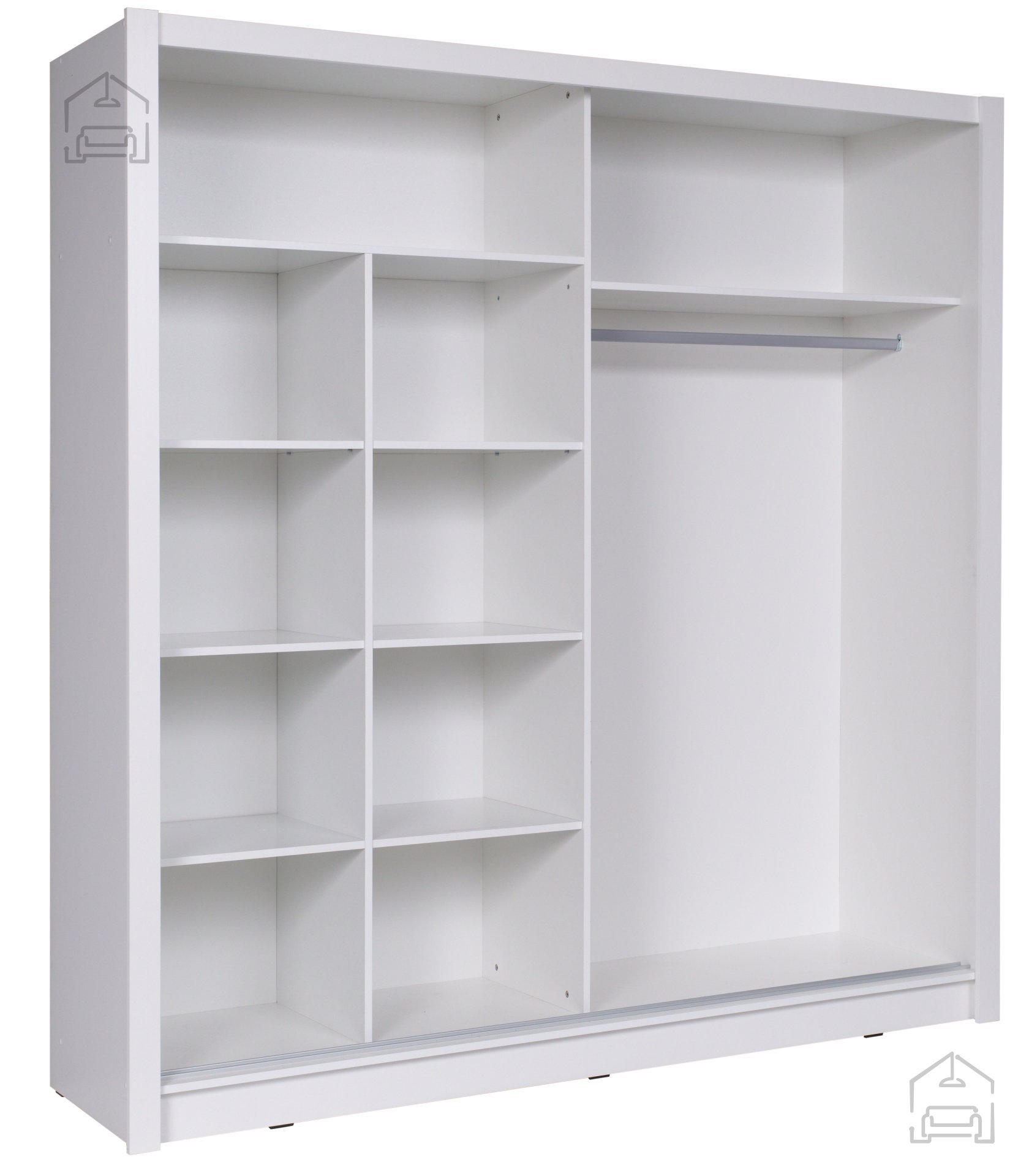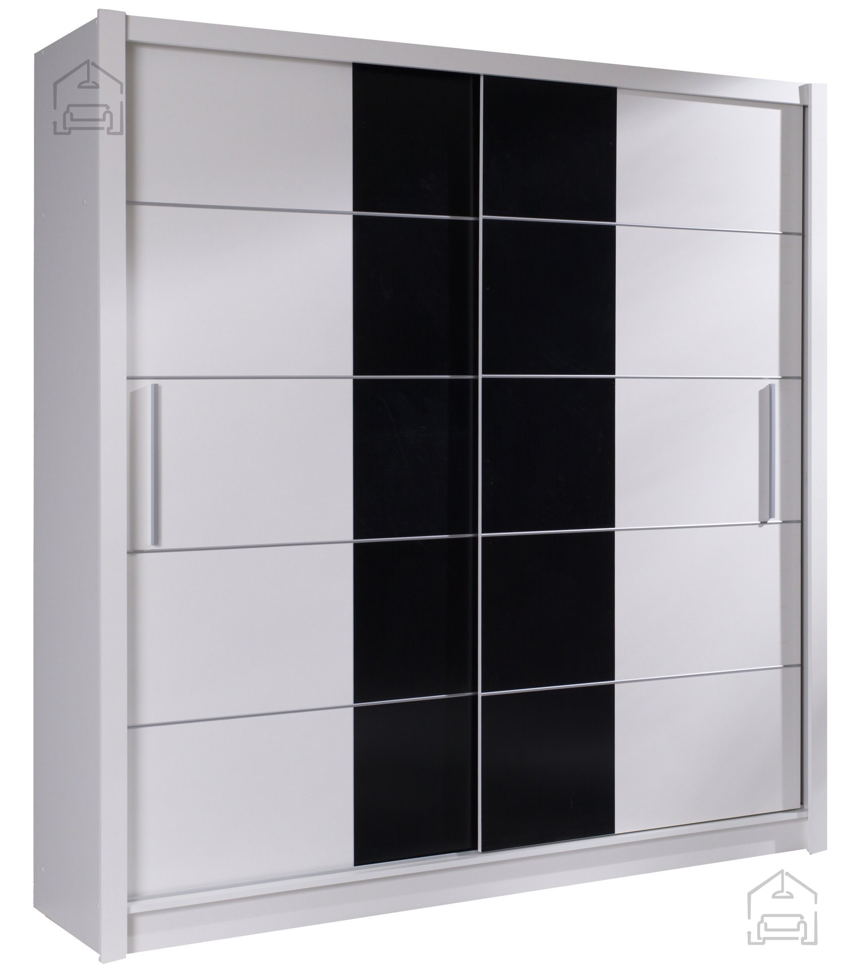Wir präsentieren Ihnen den eleganten und funktionalen Kleiderschrank mit Schiebetüren Bari XII – die ideale Wahl für alle, die modernes Design und Praktikabilität schätzen. Dieser Schrank, gefertigt aus hochwertiger laminierter Platte, kombiniert klassisches alpines Weiß mit eleganten schwarzen Akzenten und verleiht ihm so ein raffiniertes und modernes Aussehen, das in jedem Raum hervorsticht.