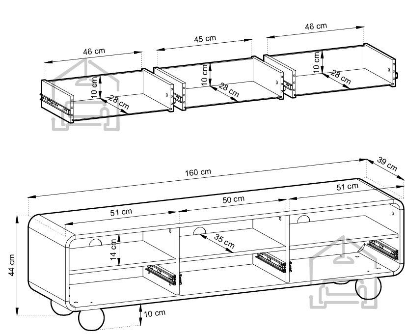 Die RTV-Kommode Albion 160 ist nicht nur optisch ansprechend, sondern auch äußerst praktisch. Ihr Design umfasst mehrere Schubladen und offene Regale, die eine einfache Aufbewahrung und Organisation Ihrer elektronischen Geräte, DVDs, Bücher oder Dekorationselemente ermöglichen. So behalten Sie die Ordnung in Ihrem Wohnzimmer und finden schnell alles, was Sie brauchen.