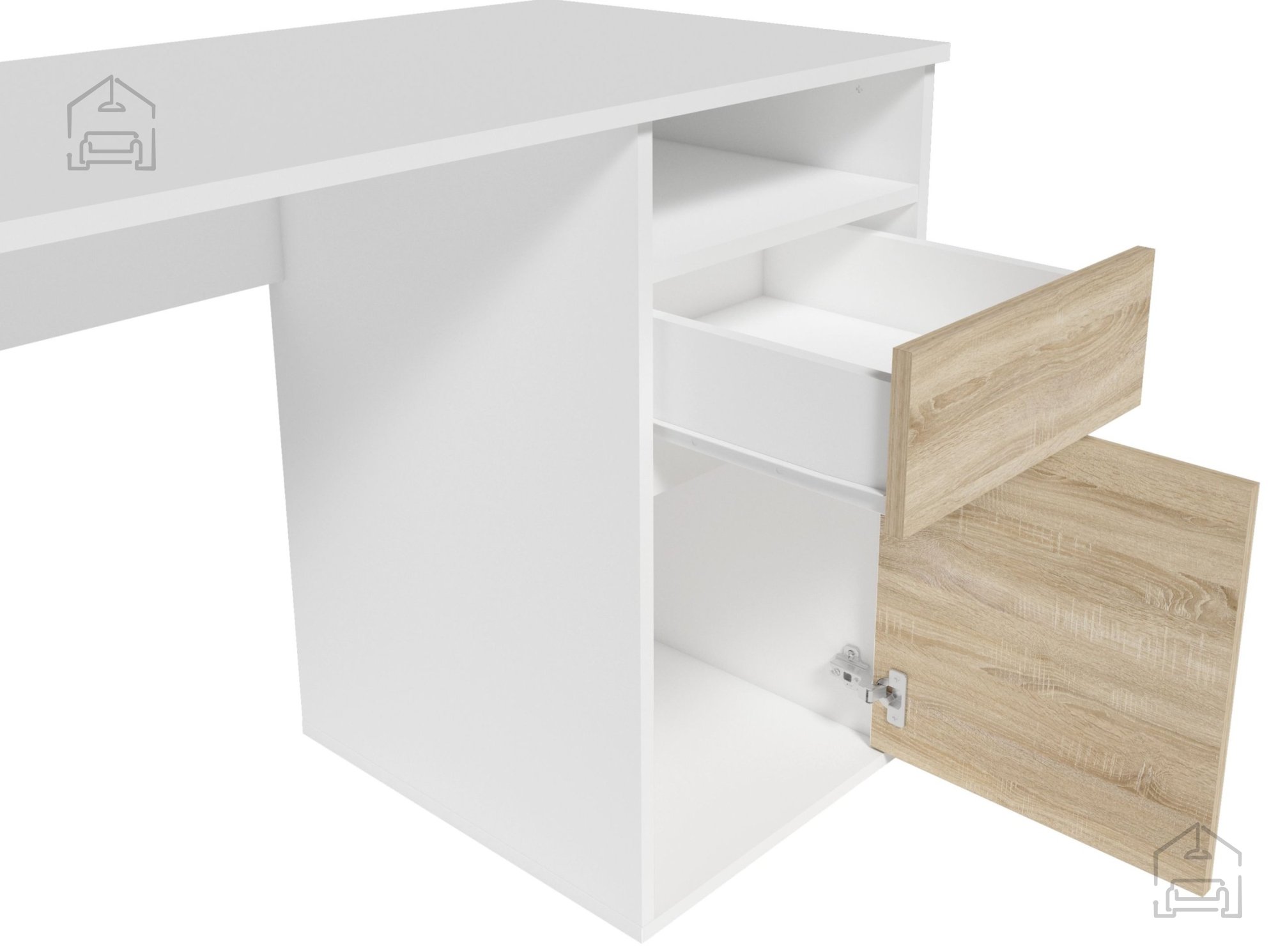 Der Schreibtisch Billa 60 besteht aus einer hochwertigen laminierten Platte, die Langlebigkeit und eine lange Lebensdauer garantiert. Die laminierte Oberfläche ist kratz- und fleckenresistent, was die Pflege erleichtert und sicherstellt, dass Ihr Schreibtisch immer wie neu aussieht. Die Kombination aus Weiß und Sonoma-Eiche bringt Frische und Wärme, die in jeden Raum passt – unabhängig von Stil oder Dekor.