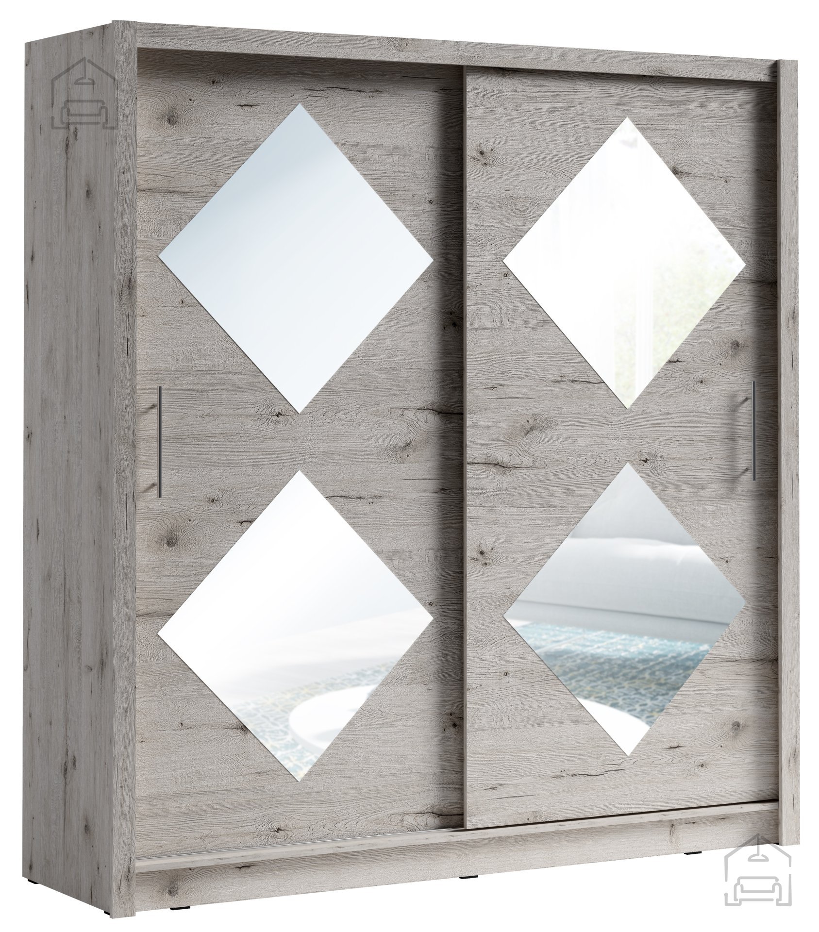 Geräumig und praktisch: Mit seinen beeindruckenden Maßen bietet der Schrank ausreichend Platz zur Aufbewahrung all Ihrer Kleidung und Accessoires. Die Schiebetüren ermöglichen einen einfachen Zugang und sparen Platz – besonders wichtig in kleineren Wohnungen.