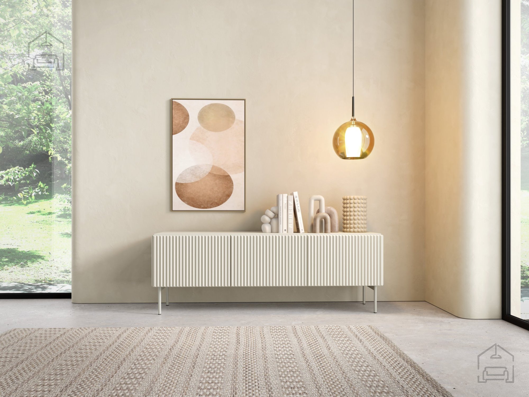Wenn modernes Design auf zeitlose Eleganz trifft, entstehen Möbel, die Erwartungen übertreffen. Der sanfte Kaschmirton, klare Linien und subtile dekorative Rillen schaffen ein visuelles Gleichgewicht, das beruhigt und inspiriert. Metallfüße verleihen einen Hauch industrieller Stärke, während hochwertige Materialien sicherstellen, dass die Möbel den Herausforderungen des Alltags standhalten.