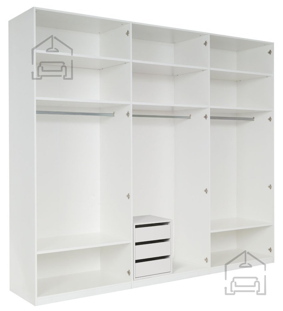 Die perfekte Kombination aus Eleganz, Funktionalität und hochwertiger Verarbeitung – dieser geräumige Kleiderschrank bringt Ordnung, Stil und ein prestigeträchtiges Aussehen in Ihr Zuhause. Mit seiner Breite von 270 cm, einer Tiefe von 59 cm und einer Höhe von 237 cm bietet er außergewöhnlich viel Platz zur Aufbewahrung von Kleidung, Schuhen und Modeaccessoires. Gleichzeitig vergrößert und erhellt die moderne weiße Hochglanzoberfläche optisch jeden Raum. Sein raffiniertes Design ermöglicht es, ihn sowohl in moderne als auch in klassisch eingerichtete Schlafzimmer oder Ankleideräume problemlos zu integrieren.