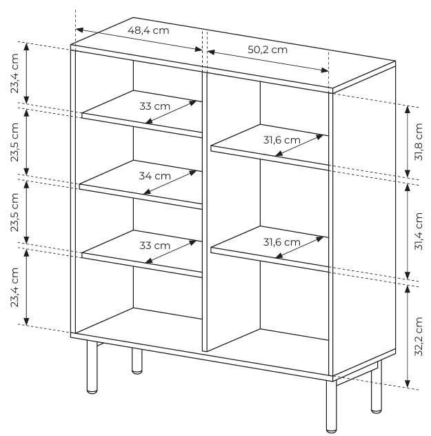 Die Kommode wird nach hohen Qualitätsstandards gefertigt, was bedeutet, dass Sie viele Jahre Freude daran haben werden, ohne sich Gedanken über Abnutzung oder Schäden machen zu müssen. Dank ihrer Höhe und optimalen Breite bietet sie viel Stauraum, ohne dabei viel Bodenfläche einzunehmen – ein entscheidender Vorteil in kleineren Wohnungen oder Räumen, in denen Sie ein großzügiges Raumgefühl bewahren möchten.