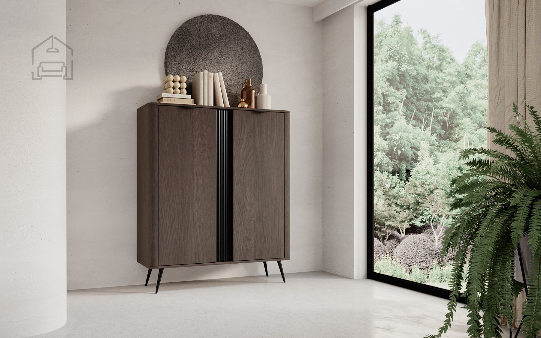 Die hohe Kommode ist nicht nur ein Möbelstück, sondern eine Investition in ein geordnetes, ästhetisch ansprechendes und funktionales Zuhause. Dank ihrer Höhe bietet sie viel Stauraum und ermöglicht gleichzeitig, auf der oberen Fläche dekorative Gegenstände, Bücher oder Familienfotos zu präsentieren. Eine ideale Lösung für alle, die Wert auf Ordnung, Wärme und stilvolle Eleganz legen.