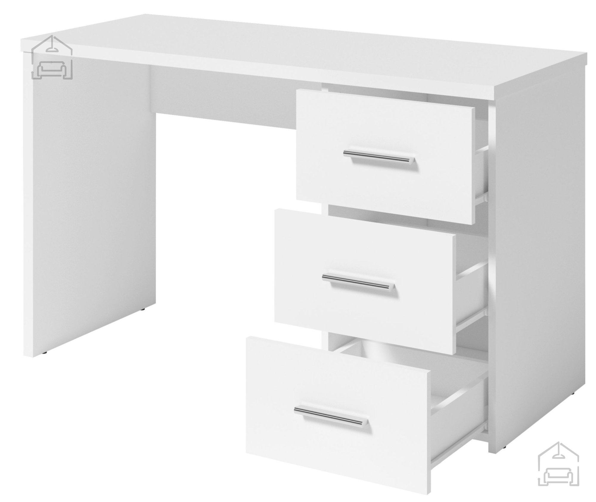 Die Maße 120x53x75 cm ermöglichen eine optimale Raumnutzung – ausreichend Platz für Computer, Monitor, Dokumente und Büroaccessoires, und dennoch kompakt genug, um auch in kleinere Räume zu passen. Der Tisch ist mit drei geräumigen Schubladen ausgestattet, die genügend Stauraum für Ordner, Stifte, Ladegeräte und andere wichtige Utensilien bieten. Die Kunststoffgriffe sind ergonomisch und ermöglichen ein müheloses Öffnen ohne großen Kraftaufwand.