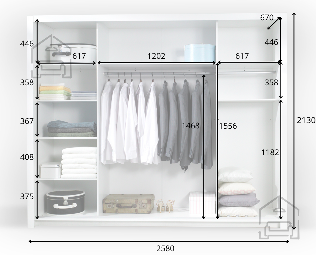 In Ihrem Zuhause ist ein Kleiderschrank mehr als nur ein Aufbewahrungsort – er ist ein Element, das den Stil, die Ordnung und die Funktionalität des Schlafzimmers oder Ankleidezimmers bestimmt. Der moderne Kleiderschrank mit Schiebetüren Panarea 12 3D vereint elegantes Design, durchdachte Innenaufteilung und erstklassige Verarbeitungsqualität, die selbst anspruchsvollste Nutzer zufriedenstellt. Die Maße 258 x 67 x 213 cm bieten außergewöhnliche Geräumigkeit, sodass Sie Kleidung, Schuhe und Modeaccessoires mühelos ordentlich aufbewahren können.