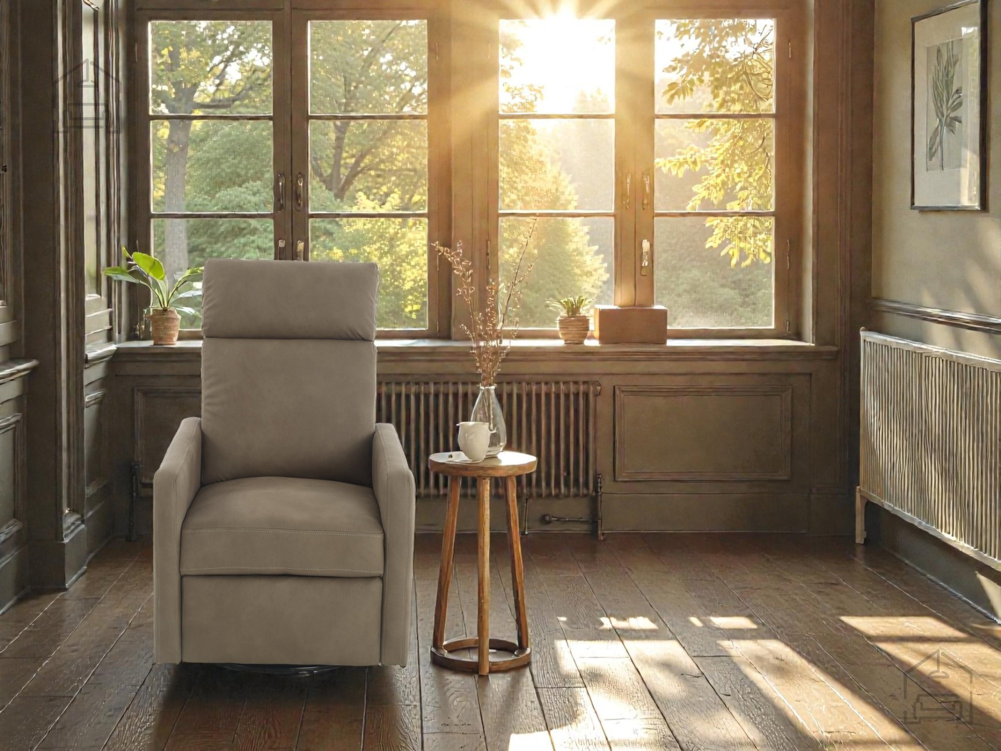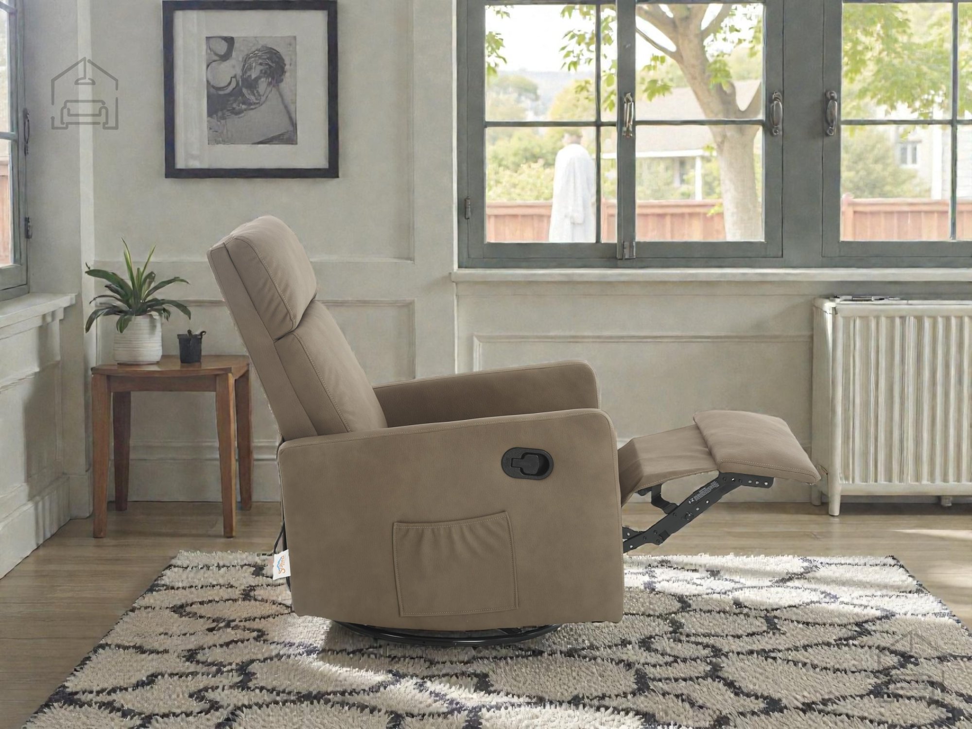 Ein weiterer Pluspunkt ist die Möglichkeit des Drehens und sanften Schaukelns (Glider & Swivel). Dadurch wird das Sitzerlebnis noch angenehmer und beweglicher. Ob leichtes Wiegen zur Beruhigung oder einfaches Drehen im Raum – dieser Sessel bietet maximale Flexibilität.