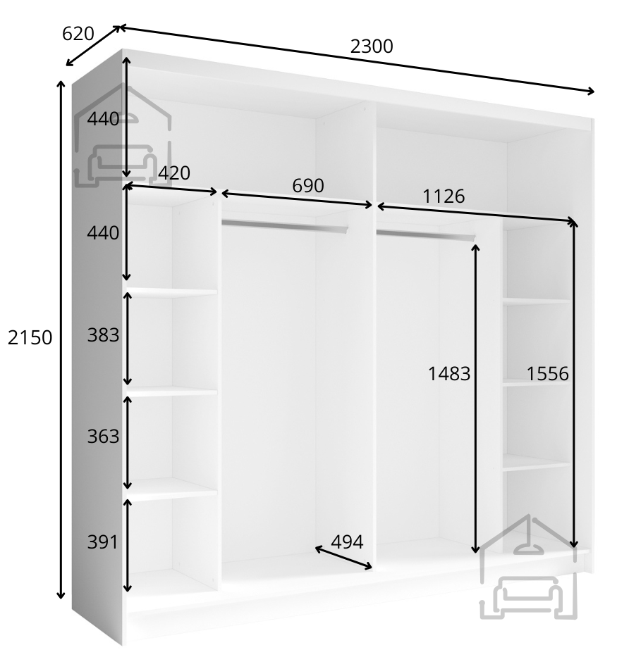 Die Investition in einen hochwertigen Kleiderschrank bedeutet langfristige Zufriedenheit und ein aufgeräumtes Zuhause. Sorgen Sie dafür, dass Ihr Raum immer ordentlich, übersichtlich und stilvoll bleibt – wählen Sie einen Schrank, der alles vereint, was Sie für die perfekte Organisation Ihrer Garderobe benötigen.