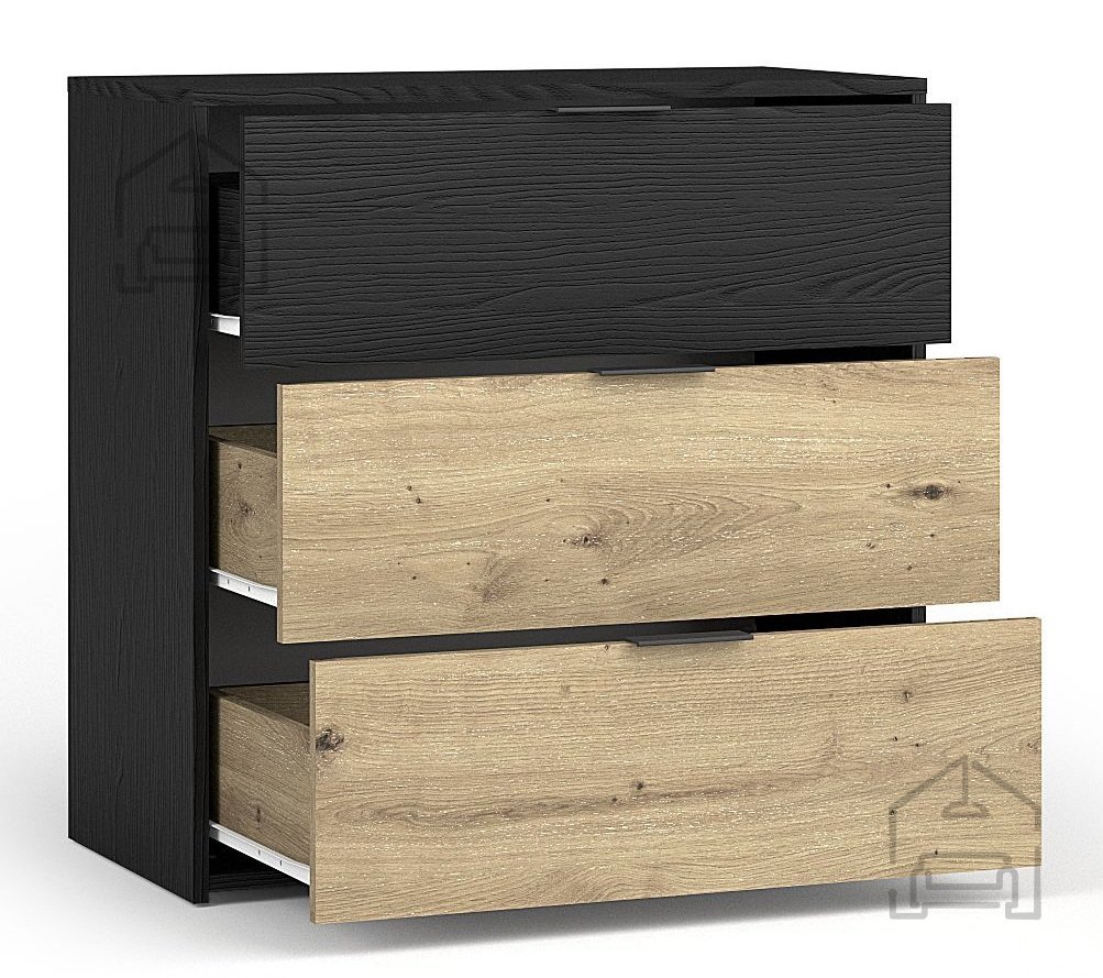 Die Kommode in der Farbkombination Schwarzgrau und Eiche Artisan ist mehr als nur ein praktisches Möbelstück – sie ist eine durchdachte Lösung, die Funktionalität, Eleganz und Nachhaltigkeit vereint. Mit ihrem modernen Design und dem Kontrast zwischen dunklen und warmen Holztönen bringt sie in jeden Raum ein Gefühl von Ordnung, Wärme und Prestige. Die Maße 80x40x80 cm ermöglichen es, dass sich die Kommode sowohl in kleine als auch in größere Räume perfekt einfügt, ohne dabei an Funktionalität zu verlieren.