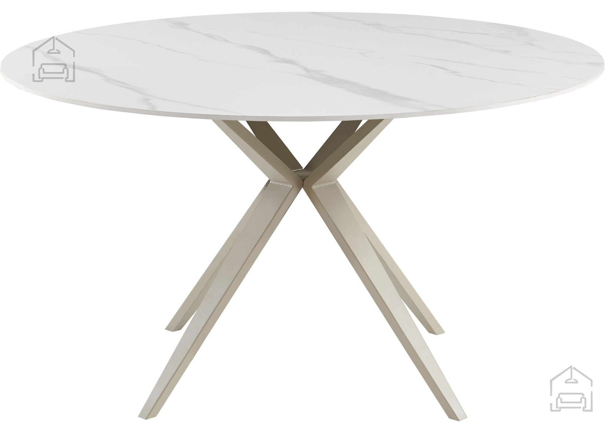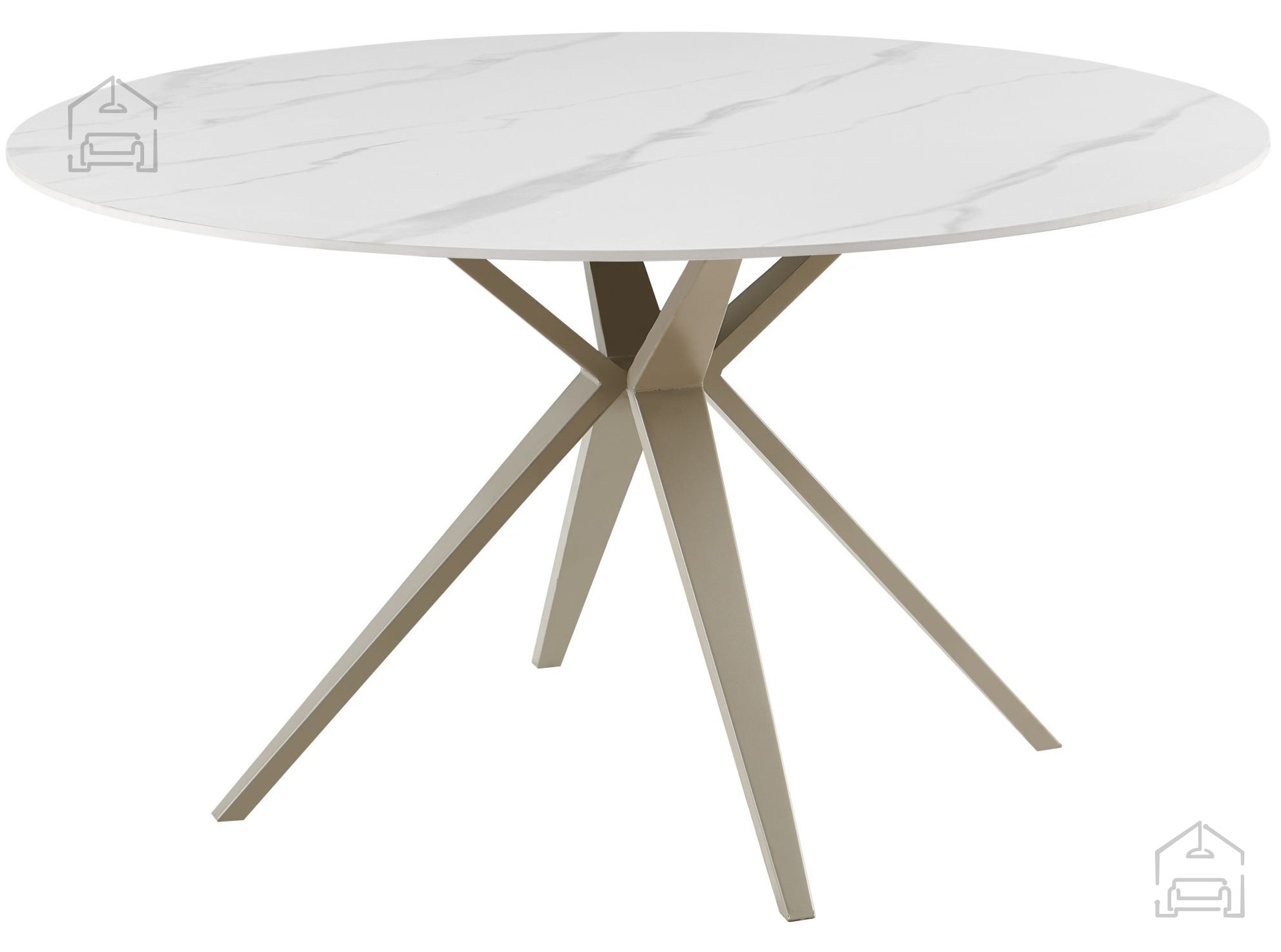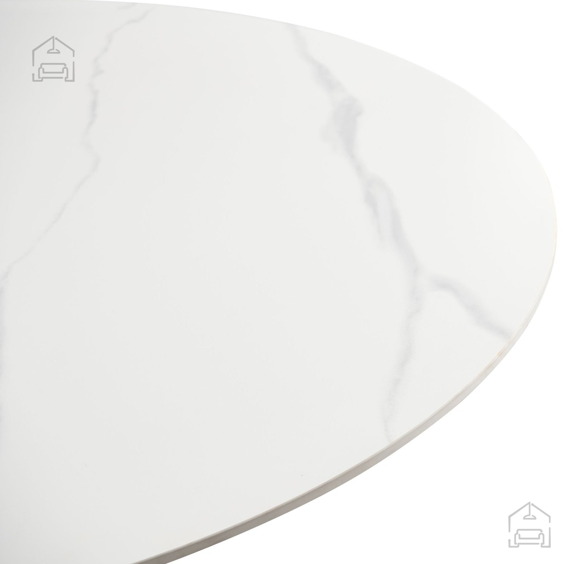 Die runde Tischplatte mit einem Durchmesser von 135 cm in edlem weiß-mattem Farbton mit Marmoroptik zieht sofort die Aufmerksamkeit auf sich. Gesinterter Stein imitiert das natürliche Aussehen von Marmor, bietet jedoch gleichzeitig eine bessere Widerstandsfähigkeit und leichtere Pflege. Dank der hellen Farbkombination passt der Tisch sowohl in moderne minimalistische Interieurs als auch in klassisch gestaltete Esszimmer. Unabhängig vom Stil Ihres Zuhauses schafft er ein Gefühl von Prestige und Helligkeit.