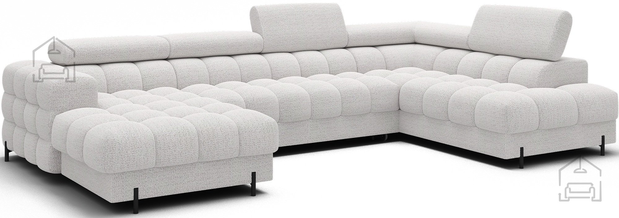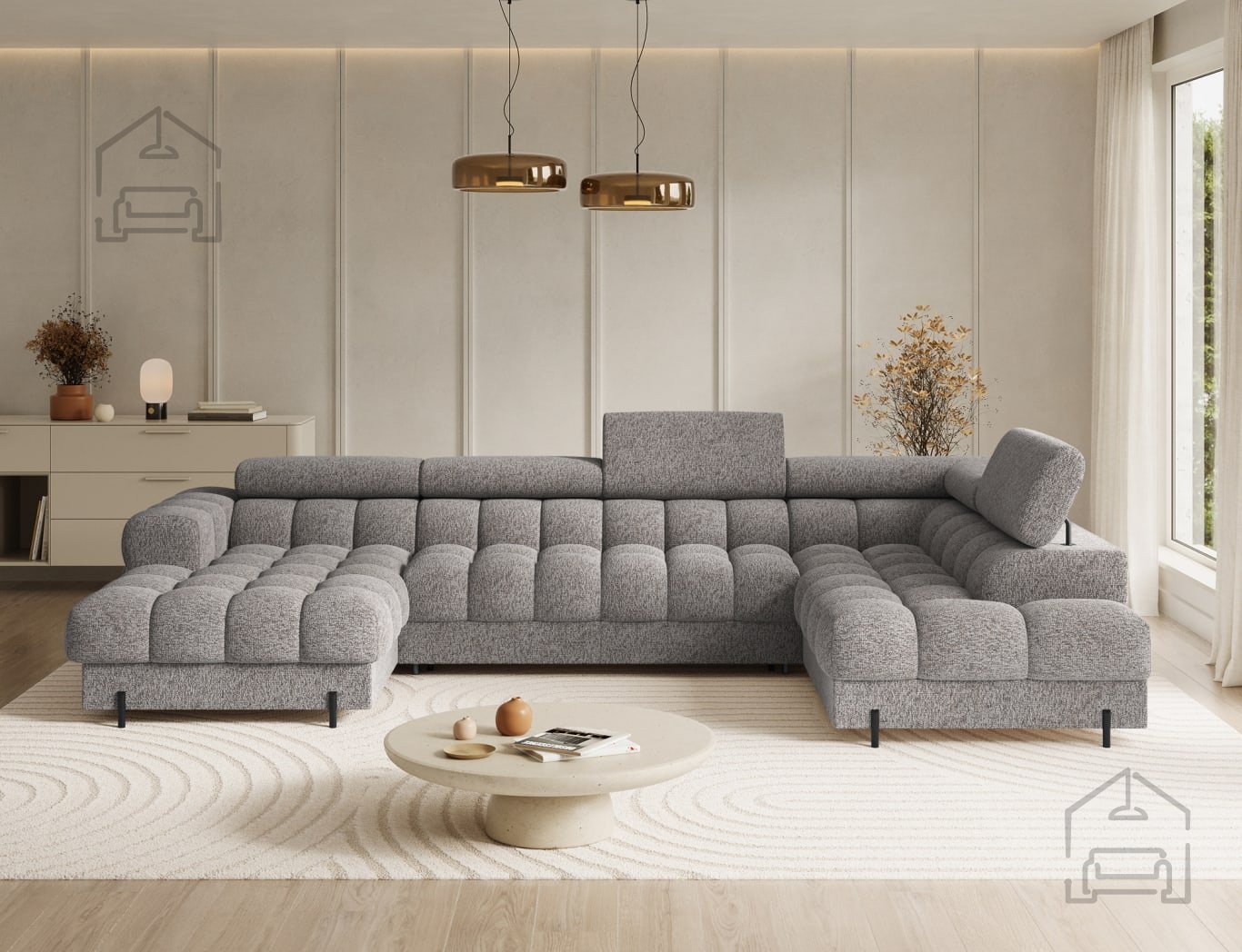 Wenn Sie eine Kombination aus Komfort, Design und Praktikabilität suchen, ist diese U-förmige Wohnlandschaft die richtige Lösung. Aufgrund ihrer Größe ist sie perfekt für großzügige Wohnzimmer geeignet, bietet aber gleichzeitig alle Funktionen, die Sie im Alltag benötigen – vom bequemen Sitzen bis hin zu einer praktischen Schlafgelegenheit und zusätzlichem Stauraum. Dieses Möbelstück wird zum Herzstück Ihres Zuhauses und zum Ort, an dem Sie sich immer gerne entspannen.