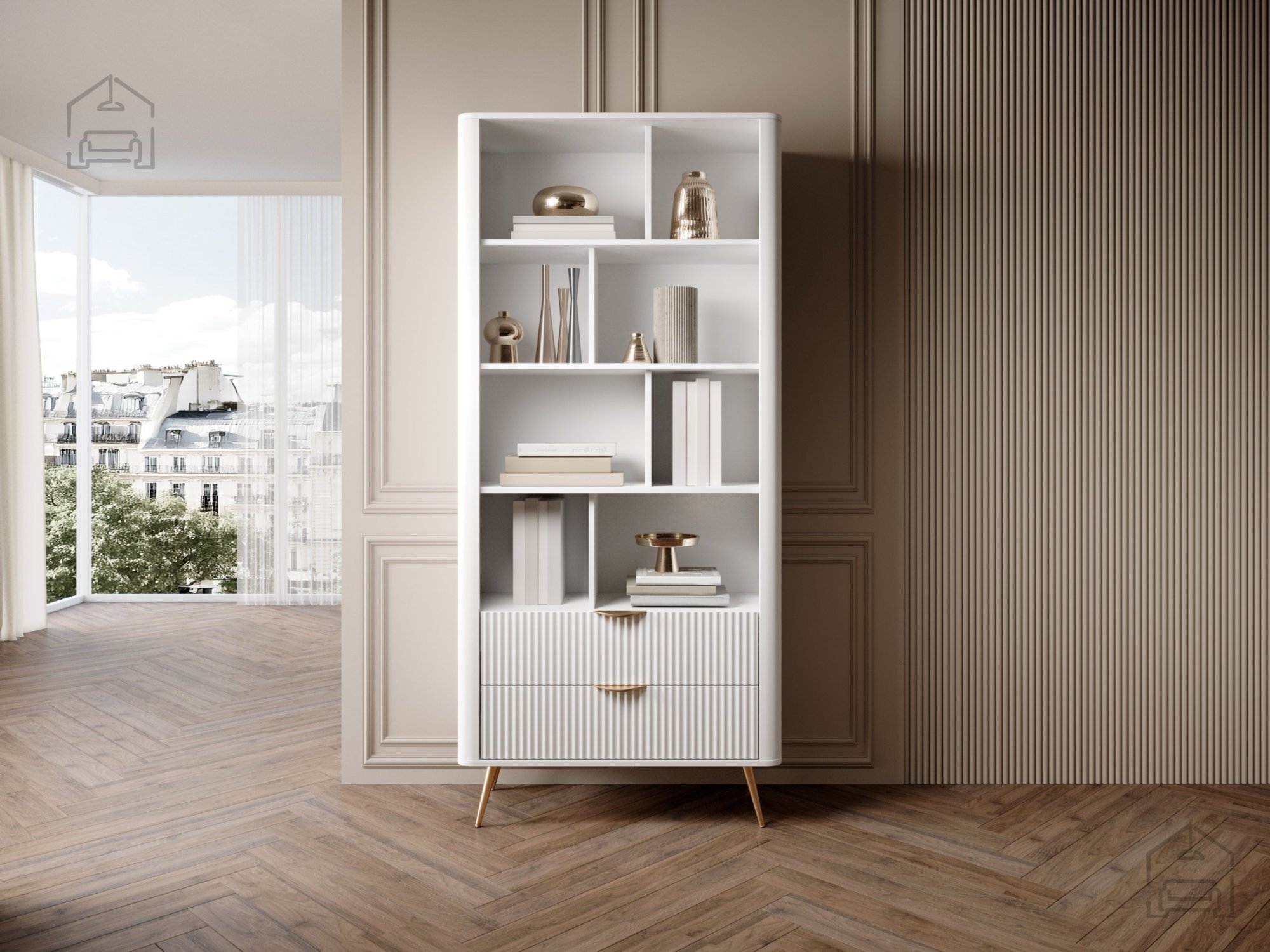 Die perfekte Kombination aus Eleganz, Funktionalität und Qualität verbirgt sich in einem Möbelstück, das Ihrem Zuhause mehr als nur Stauraum bietet. Mit seinem modernen Design und der reinen weißen Farbe passt es hervorragend in jedes Ambiente – von minimalistischen bis hin zu klassischen Interieurs. Es ist so konzipiert, dass es ausreichend Platz für Bücher, Dekoration oder persönliche Gegenstände bietet und zugleich durch seine Höhe und Stabilität als ästhetisches Element in jedem Raum wirkt.