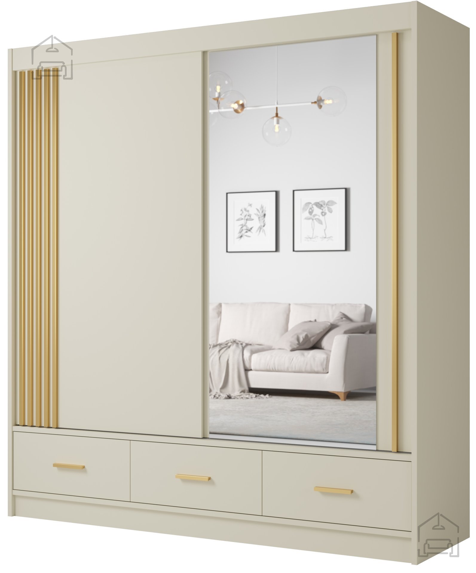 Die Kombination aus modernem Design und hoher Funktionalität macht diesen Kleiderschrank zu einer universellen Wahl. Sie können ihn im Schlafzimmer, im Flur oder im Ankleideraum aufstellen, da er sich dank seiner neutralen Farbe und eleganten Gestaltung harmonisch mit verschiedenen Möbelstücken und Dekoren kombinieren lässt. Die Kaschmirfarbe schafft ein Gefühl von Leichtigkeit und Helligkeit, was besonders in Räumen willkommen ist, in denen Sie das Gefühl von Offenheit verstärken möchten.