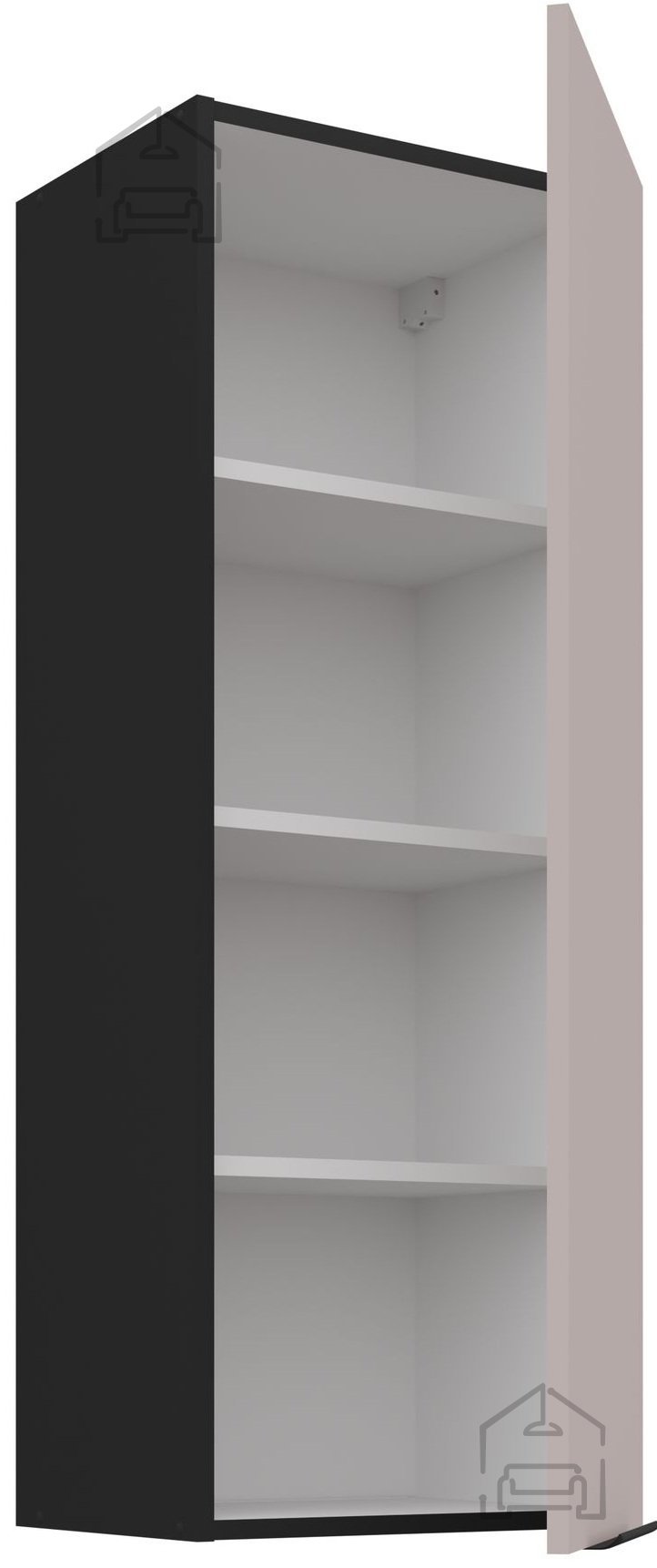 Der Schrank in den Maßen 40x31x107,5 cm beeindruckt durch die Farbkombination aus Kaschmir und Schwarz, die perfekt zu den Trends des modernen Möbeldesigns passt. Neutrale, aber gleichzeitig elegante Farbtöne ermöglichen eine einfache Kombination mit verschiedenen Küchenelementen, unabhängig vom Stil – ob minimalistisch, industriell oder klassisch. Ein besonderes Detail ist der Kanten-Griff UA-HEXA in schwarzer und aluminiumfarbener Ausführung, der für ein modernes Erscheinungsbild und eine komfortable Nutzung sorgt.