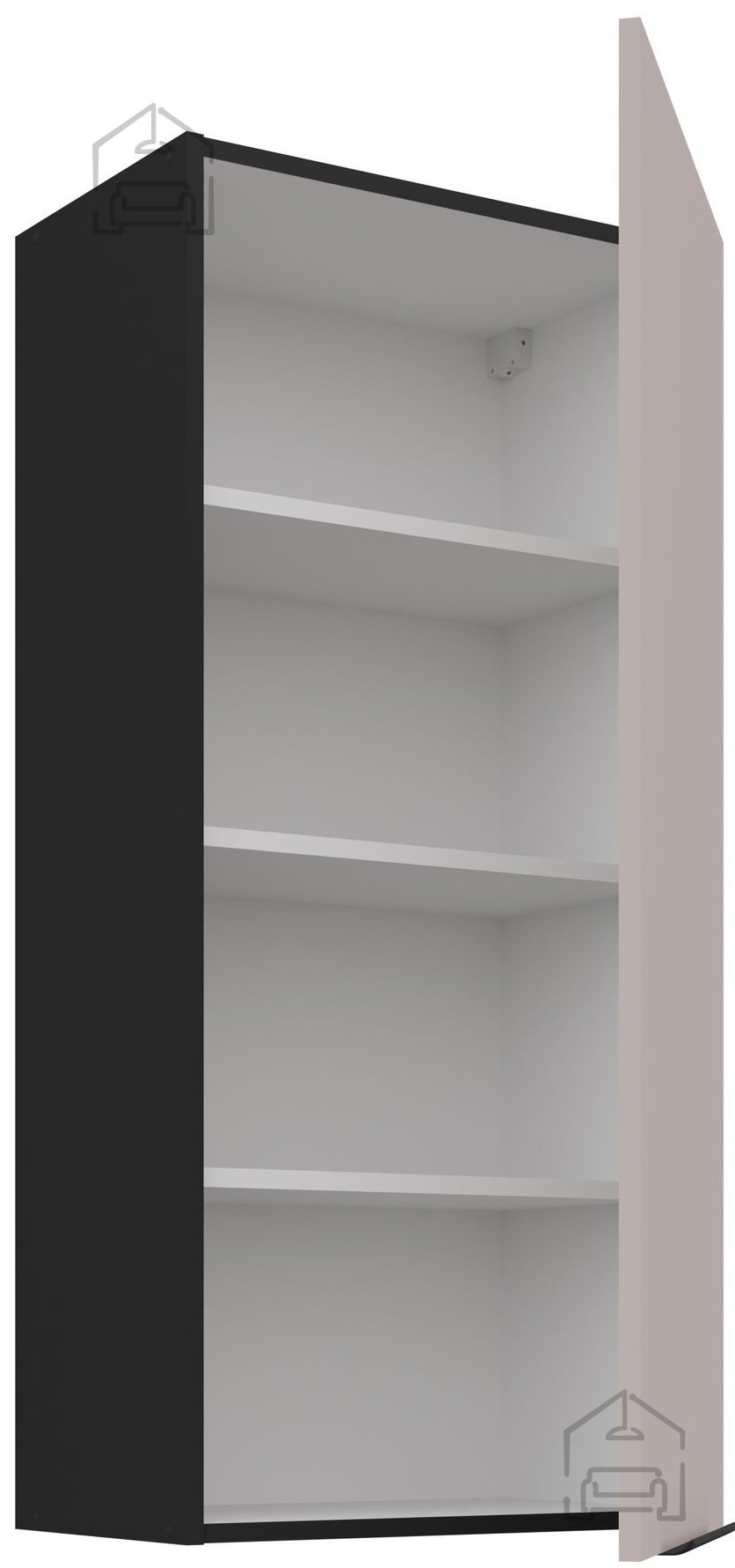 Der Schrank mit den Abmessungen 50x31x107,5 cm begeistert mit der Farbkombination aus Kaschmir und Schwarz, die perfekt zu den Trends des modernen Möbeldesigns passt. Neutrale, aber gleichzeitig elegante Farbtöne ermöglichen eine einfache Kombination mit verschiedenen Küchenelementen, unabhängig vom Stil – sei es minimalistisch, industriell oder klassisch. Ein besonderes Detail ist der Kanten-Griff UA-HEXA in schwarzer und aluminiumfarbener Ausführung, der für ein modernes Aussehen und eine komfortable Nutzung sorgt.