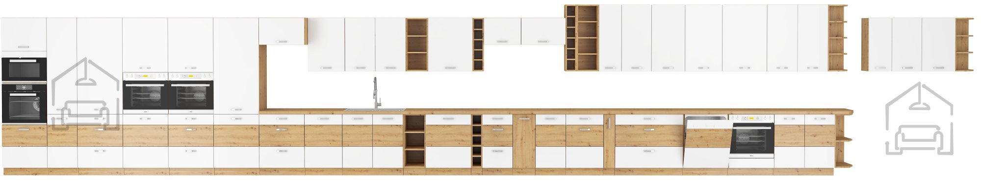 Der Schrank in der Farbkombination Eiche Artisan und Weiß Hochglanz ist nicht nur ein praktisches Möbelstück, sondern auch ein ästhetisches Accessoire, das den Raum bereichert. Egal, ob Sie die gesamte Küche renovieren oder einzelne Elemente zur Auffrischung des bestehenden Raums suchen – dieses Stück ist immer die richtige Wahl.