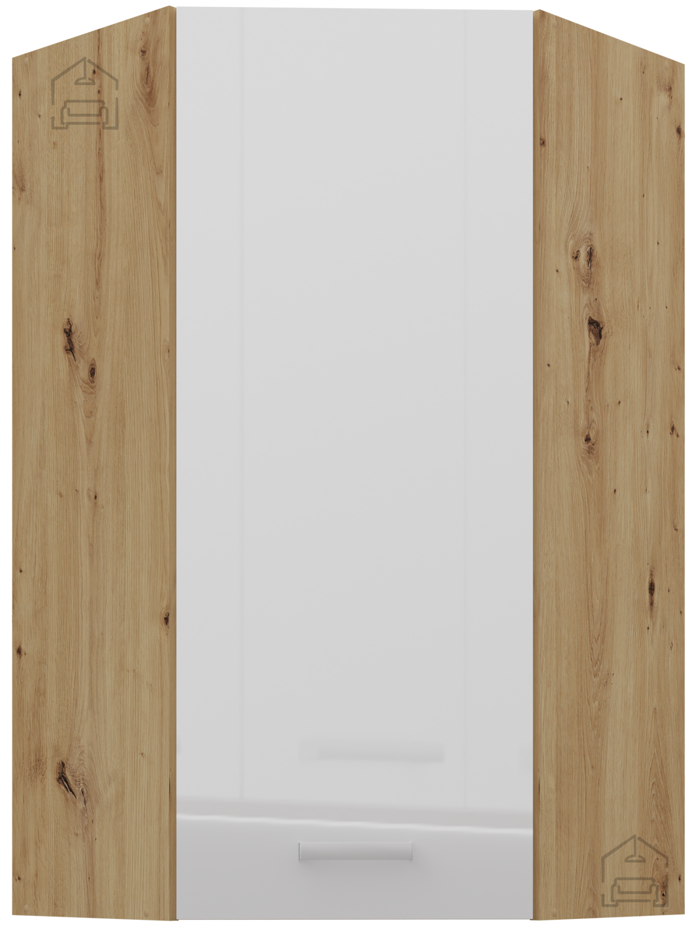 Dank seines durchdachten Designs ist dieser obere Eckschrank eine hervorragende Ergänzung für jede Küche, unabhängig von ihrem Stil. Wenn Sie schönes Aussehen und Praktikabilität kombinieren und gleichzeitig jeden Zentimeter Raum optimal nutzen möchten, ist dies eine Investition, die sich langfristig auszahlt. Außerdem besteht er aus hochwertigen Materialien, was bedeutet, dass Sie seine Nutzung lange genießen können, ohne befürchten zu müssen, dass er schnell abgenutzt wird.