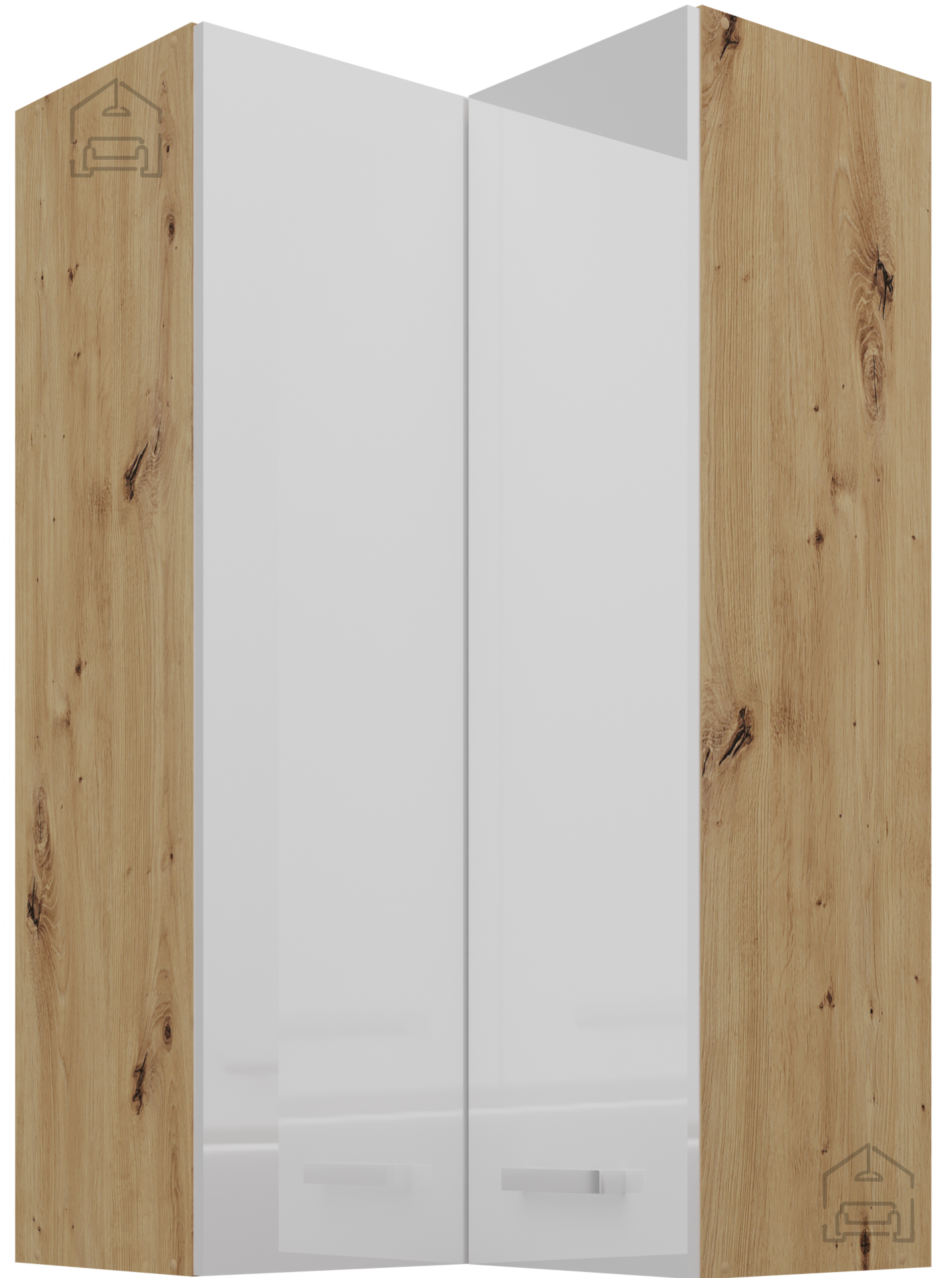 Dank seines durchdachten Designs ist dieser obere Eckschrank eine hervorragende Ergänzung für jede Küche, unabhängig von ihrem Stil. Wenn Sie schönes Aussehen und Praktikabilität kombinieren und gleichzeitig jeden Winkel des Raums optimal nutzen möchten, ist dies eine Investition, die sich langfristig auszahlt. Außerdem ist er aus hochwertigen Materialien gefertigt, was bedeutet, dass Sie seine Nutzung lange genießen können, ohne sich Sorgen über schnellen Verschleiß zu machen.