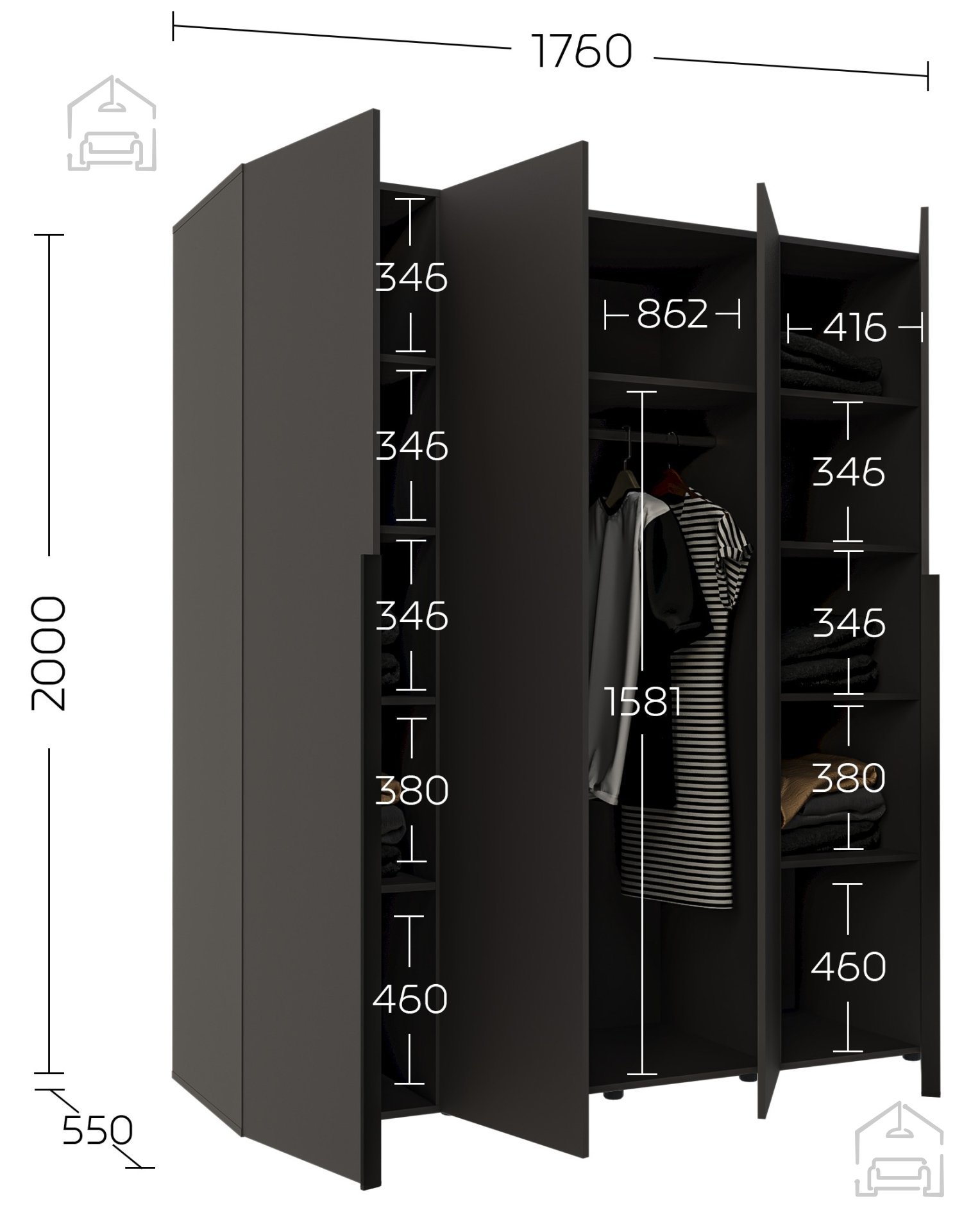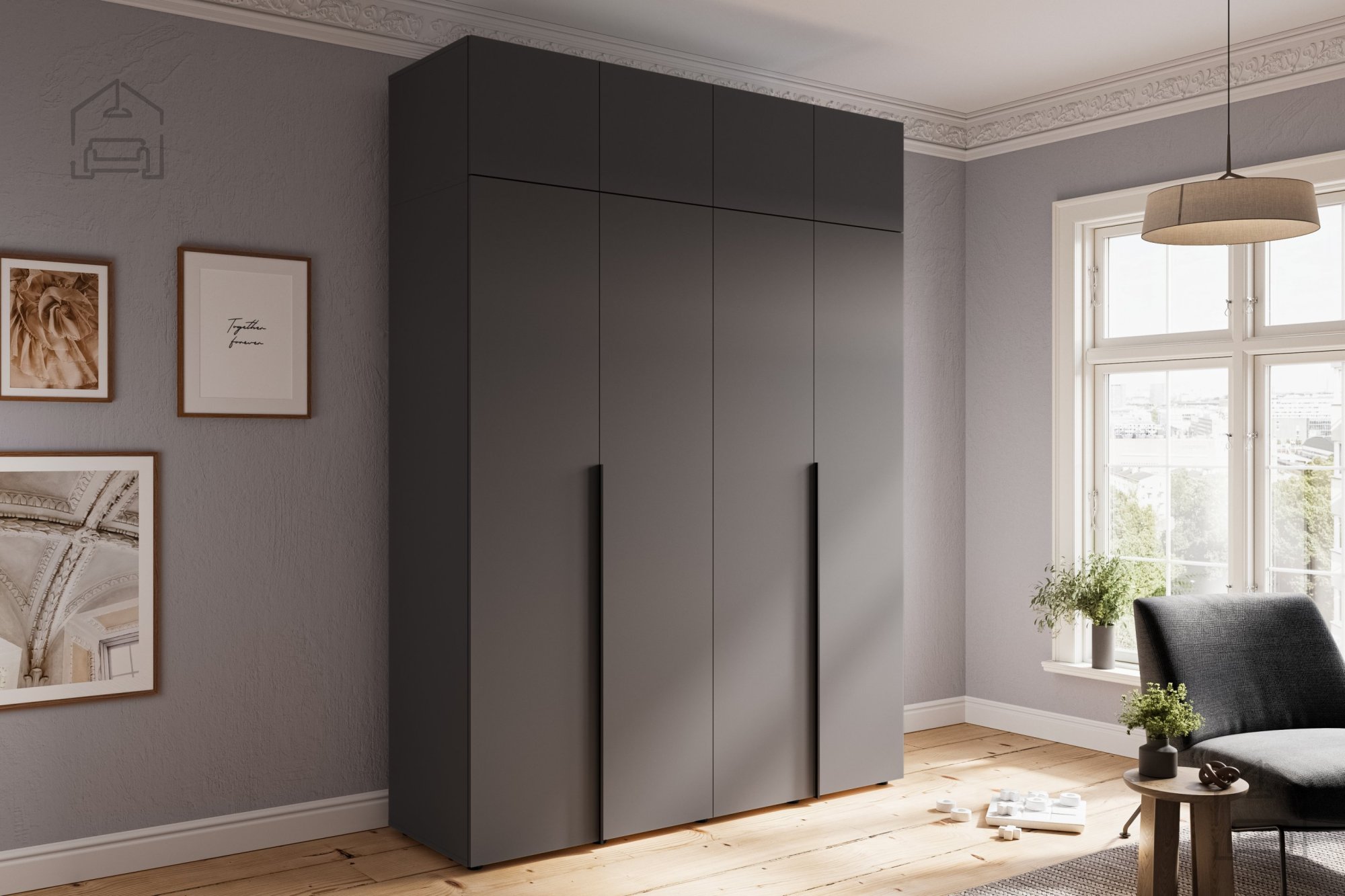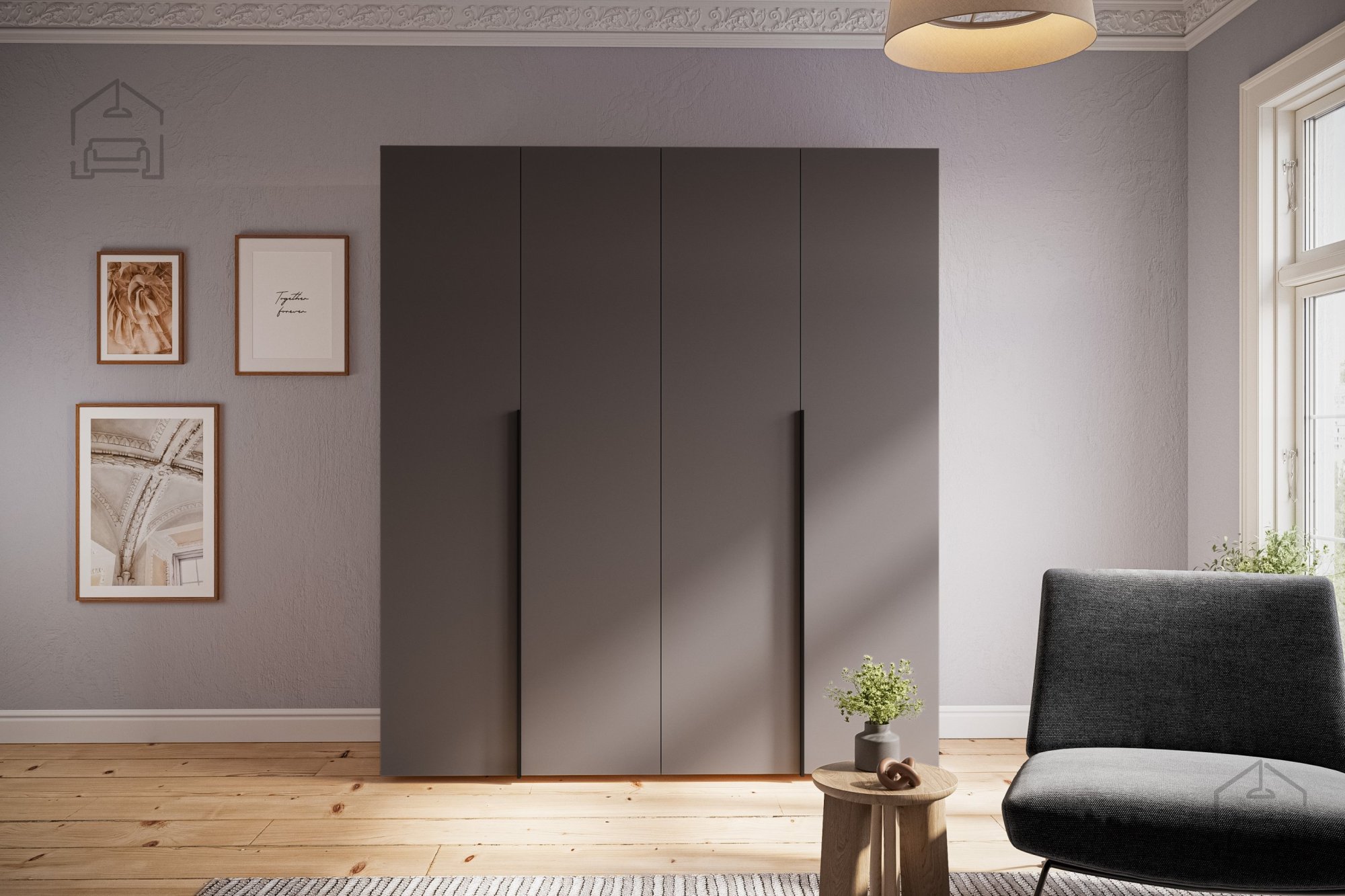 Wählen Sie einen Kleiderschrank in graphitgrauer Farbe und sorgen Sie dafür, dass Ihr Zuhause stets ordentlich, elegant und wohnlich aussieht.