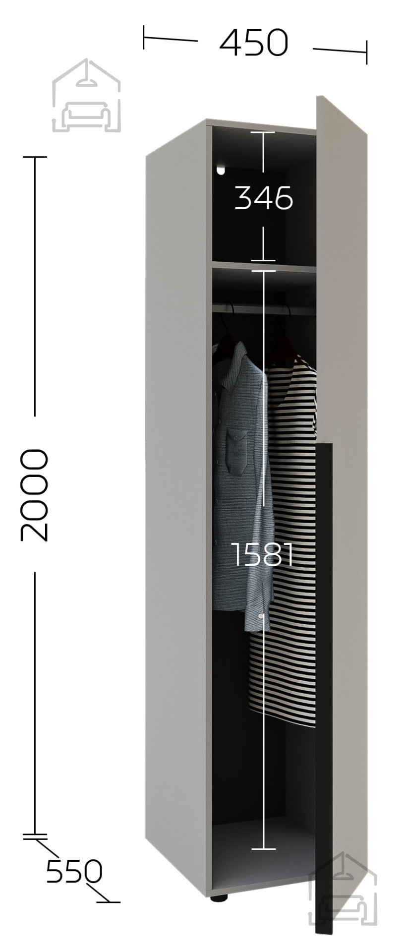 Bei der Auswahl von Möbeln ist es wichtig, nicht nur auf den aktuellen Bedarf zu achten, sondern auch auf die langfristige Nutzbarkeit. Dieser eintürige Kleiderschrank ist so konzipiert, dass er viele Jahre hält, ohne sein modernes Aussehen oder seine Funktionalität zu verlieren. Dank hochwertiger Materialien und präziser Verarbeitung ist er widerstandsfähig gegen den täglichen Gebrauch und gleichzeitig pflegeleicht.