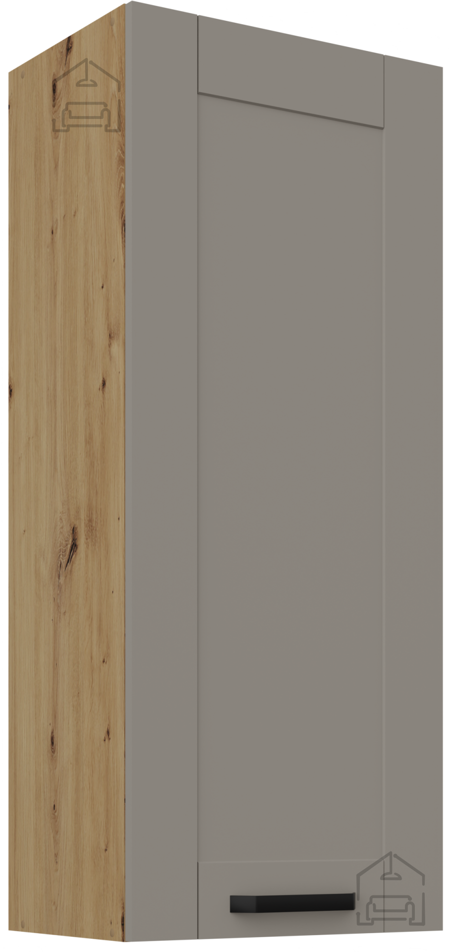 Eine elegante und funktionale Lösung für jede Küche, die modernes Design mit der Wärme natürlicher Töne verbindet. Der Oberschrank Luna in der Kombination Claygrey und Eiche Artisan ist die perfekte Wahl für alle, die sich einen praktischen Stauraum und zugleich ein ästhetisch vollendetes Möbelstück wünschen. Mit seinen kompakten Abmessungen von 45x31x107,5 cm passt er problemlos auch in kleinere Küchen und bietet dabei ausreichend Platz für Ihre Küchenutensilien, Gewürze oder Geschirr.
