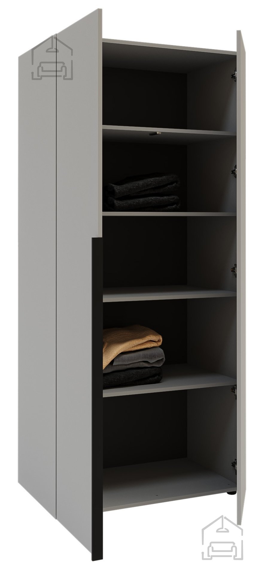 Die perfekte Raumorganisation beginnt mit dem ausgewählten Schrank, der Funktionalität, Eleganz und hochwertige Verarbeitung vereint. Der zweiteilige Kleiderschrank Solo 2D Sh in modernem Grauton ist eine ausgezeichnete Lösung für jedes Zuhause, da sein durchdachtes Design ausreichend Platz für die Aufbewahrung von Kleidung, Schuhen und Accessoires bietet und sich mit seinem minimalistischen Erscheinungsbild harmonisch in verschiedene Einrichtungsstile einfügt. Mit einer kompakten Breite von 90 cm und einer Höhe von 200 cm ermöglicht er eine optimale Raumausnutzung auch in kleineren Schlafzimmern, Fluren oder Ankleideräumen.