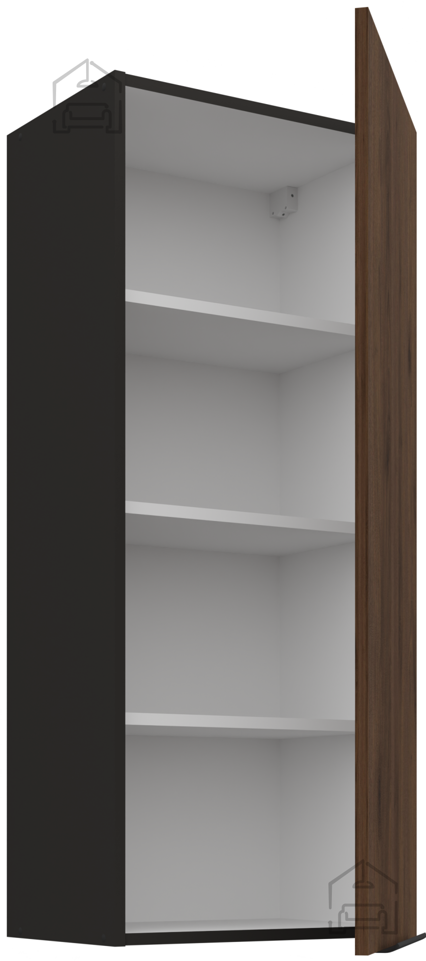 Wenn Sie einen oberen Küchenschrank suchen, der Ästhetik, Qualität und Praktikabilität vereint, dann ist dieses Modell eine ausgezeichnete Wahl. Der Fokus auf Details wie Griffe, hochwertige Scharniere und leises Schließen beweist, dass es sich um ein Produkt der höheren Klasse handelt. Darüber hinaus ermöglicht die Farbkombination aus Walnuss und Schwarz eine einfache Kombination mit anderen Elementen im Raum – sowohl mit hellen als auch mit dunklen Tönen. So schaffen Sie eine harmonische und moderne Küche, die Ihren persönlichen Stil widerspiegelt.