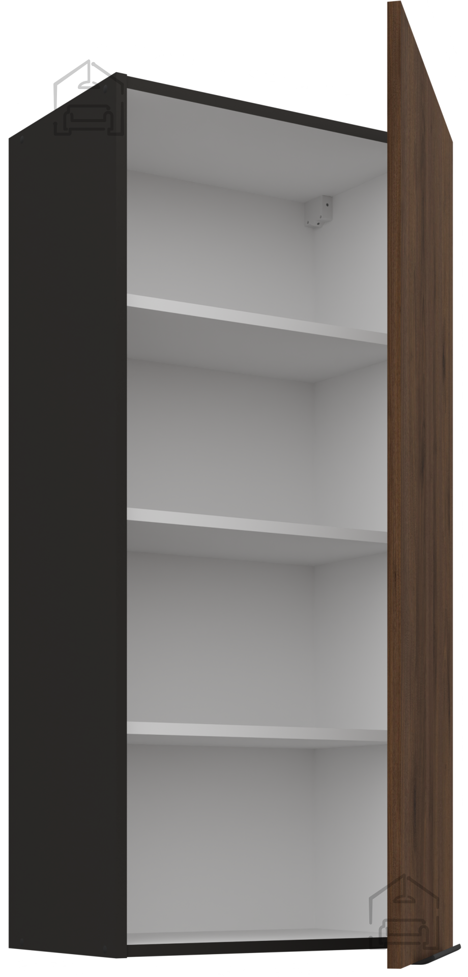 Wenn Sie einen oberen Küchenschrank suchen, der Ästhetik, Qualität und Praktikabilität vereint, ist dieses Modell eine ausgezeichnete Wahl. Die Betonung auf Details wie Griffen, hochwertigen Scharnieren und sanftem Schließen beweist, dass es sich um ein Produkt der höheren Klasse handelt. Darüber hinaus ermöglicht die Farbkombination aus Walnuss und Schwarz eine einfache Kombination mit anderen Elementen im Raum – sowohl mit hellen als auch mit dunklen Tönen. So schaffen Sie eine harmonische und moderne Küche, die Ihren persönlichen Stil widerspiegelt.