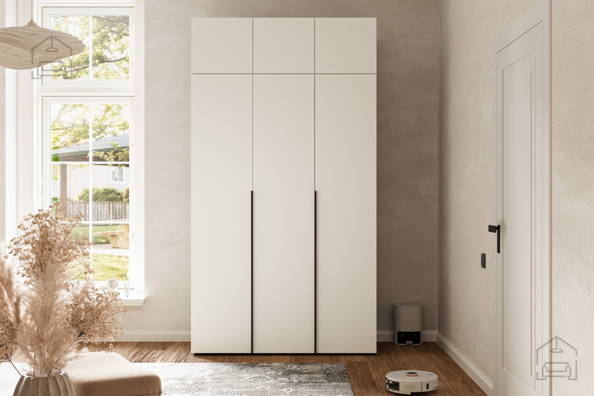 Der Schrank ist so konzipiert, dass er sich perfekt an verschiedene Einrichtungsstile anpasst – von minimalistisch und modern bis klassisch. Der helle Farbton Nymphaea alba verleiht dem Raum ein Gefühl von Geräumigkeit und Frische und ermöglicht gleichzeitig eine einfache Kombination mit anderen Möbelstücken im Schlafzimmer, Flur oder Ankleidezimmer.
