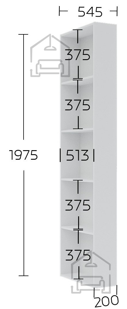 Das Regal ist mit Blick auf praktische Nutzung und langanhaltende Qualität entworfen. Die Maße 55x20x198 cm ermöglichen eine optimale Raumausnutzung – es ist schmal genug, um auch in einer engen Ecke aufgestellt zu werden, gleichzeitig aber hoch und geräumig genug zur Aufbewahrung von Büchern, Dekorationen, Dokumenten oder persönlichen Gegenständen. Jeder Regalboden besteht aus einer hochwertigen laminierten Platte mit 16 mm Stärke, die Stabilität und Widerstandsfähigkeit im täglichen Gebrauch gewährleistet.