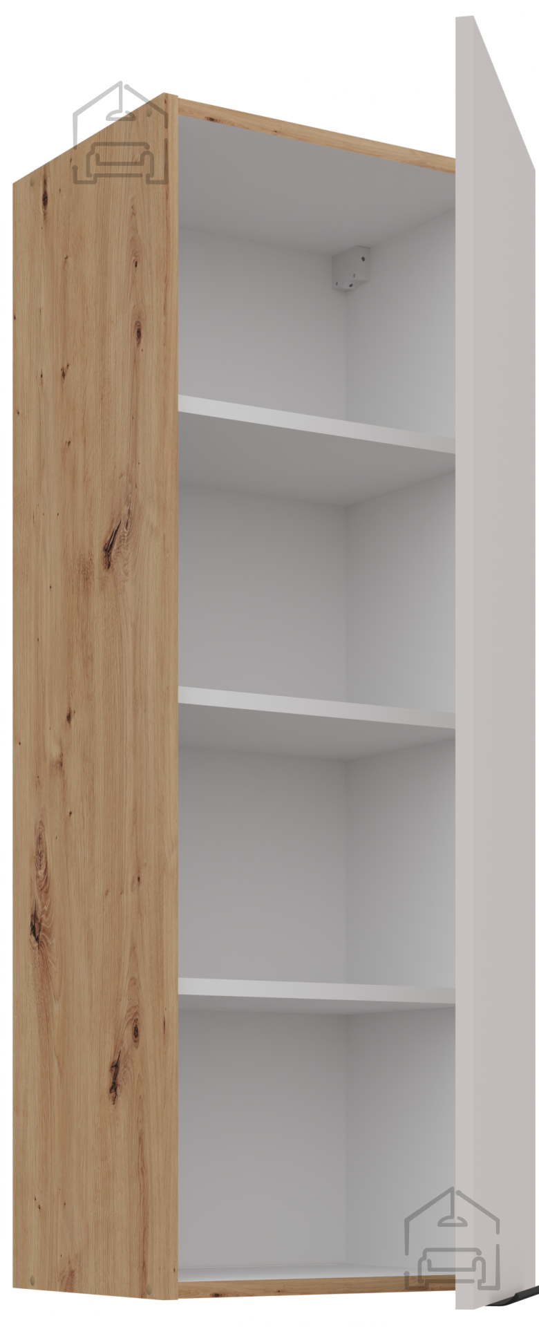 Das Küchenensemble Solea zeichnet sich durch hochwertige Materialien und ein durchdachtes Farbschema aus. Der Rahmen aus 16 mm starker laminierter Platte sorgt für Haltbarkeit und Langlebigkeit, während die Korpusfarbe im Farbton Eiche Artisan einen Hauch natürlicher Wärme verleiht. Die Front in elegantem Kaschmir sorgt für ein anspruchsvolles Erscheinungsbild, das sich perfekt mit modernen oder klassischen Dekorationselementen Ihres Hauses verbindet.