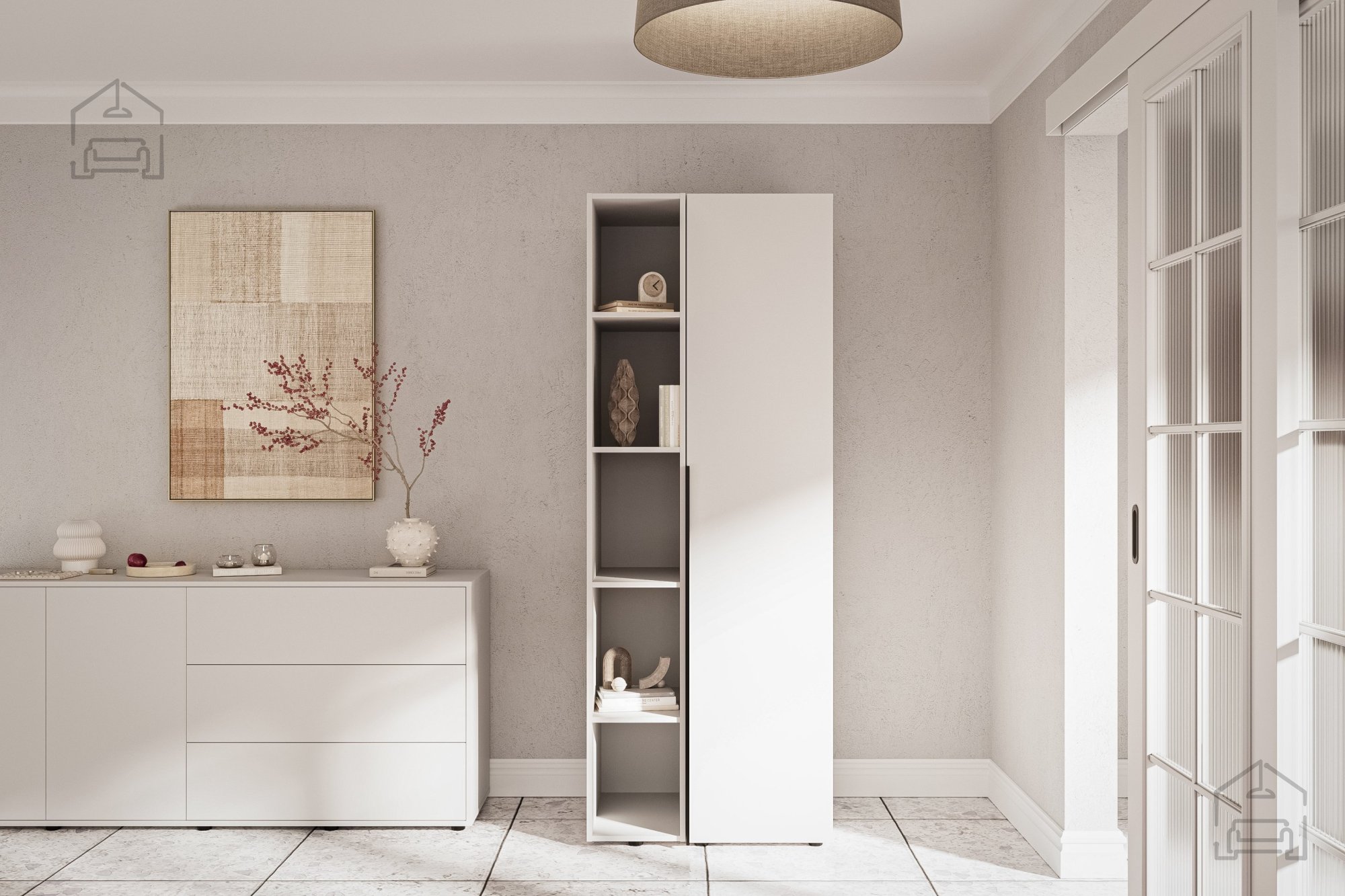 Die perfekte Kombination aus Eleganz, Funktionalität und modernem Design – das ist ein Regal, das in jedes Zuhause Wärme, Ordnung und raffinierten Stil bringt. Mit seiner schlanken und zugleich stabilen Konstruktion ist es die ideale Wahl für alle, die einen aufgeräumten Raum und eine minimalistische Ästhetik schätzen. Das Regal in der Farbe nimfea alba begeistert mit seinem hellbeigen Farbton, der sich mühelos mit verschiedenen Einrichtungsstilen kombinieren lässt – von skandinavisch bis klassisch oder modern.