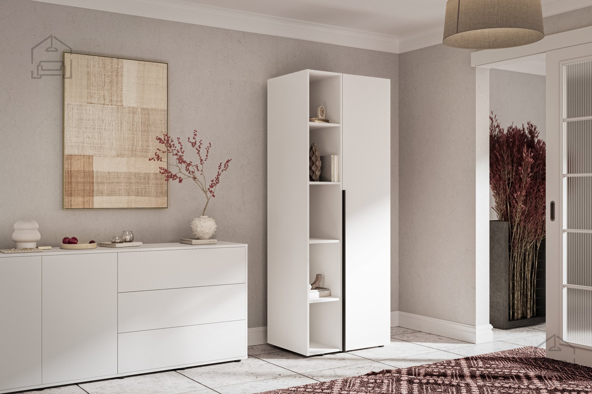 Wenn Sie Möbel wünschen, die Ästhetik, Qualität und Funktionalität vereinen, ist dieses Regal die perfekte Wahl. Sein schlichtes, aber elegantes Erscheinungsbild ermöglicht es, sich in jeden Einrichtungsstil einzufügen und zum zentralen Element des Raumes zu werden. Aufgrund seiner Höhe und schmalen Form ist es ideal, um einen vertikalen Akzent zu schaffen, der den Raum optisch vergrößert und ein Gefühl von Leichtigkeit verleiht.