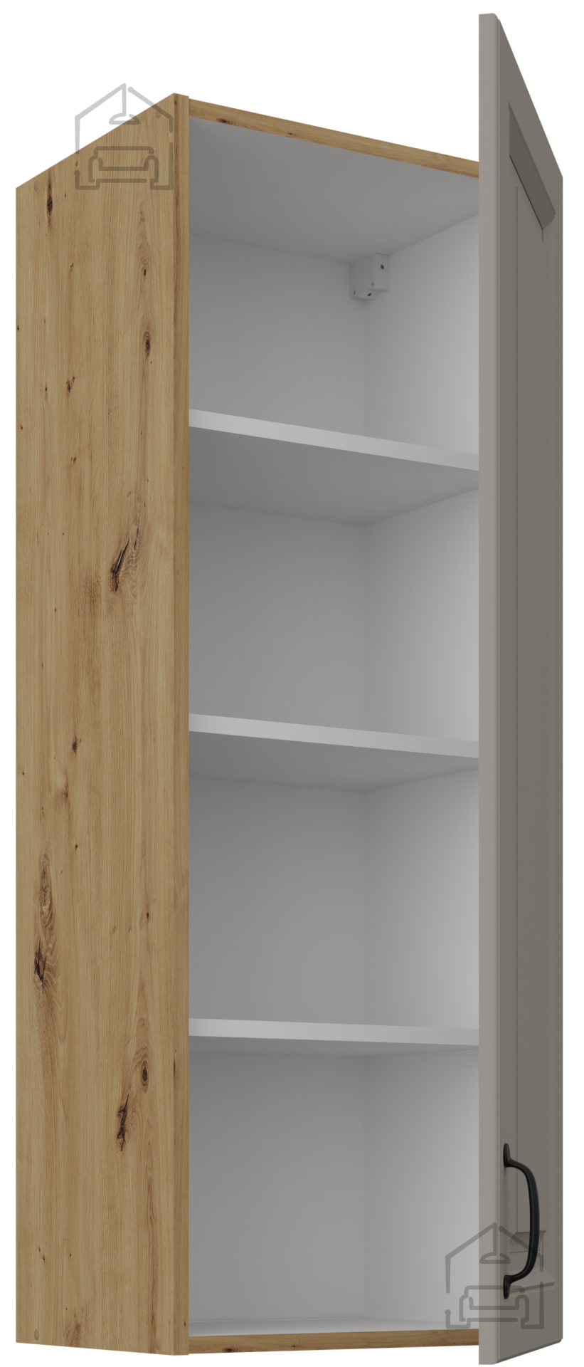 Die perfekte Kombination aus Eleganz, Funktionalität und Qualität – dieser obere Küchenschrank in der Farbkombination claygrey/Eiche artisan ist die ideale Wahl für alle, die zeitlose Ästhetik und moderne Praktikabilität schätzen. Mit präziser Verarbeitung und durchdachtem Design fügt er sich perfekt in jeden Küchenraum ein und sorgt für mehr Ordnung und Komfort im täglichen Gebrauch. Der Schrank, hergestellt in der renommierten Fabrik Stolarz-Lempert in Polen, vereint europäische Qualität und ästhetische Vollendung, die selbst den anspruchsvollsten Benutzer begeistert.