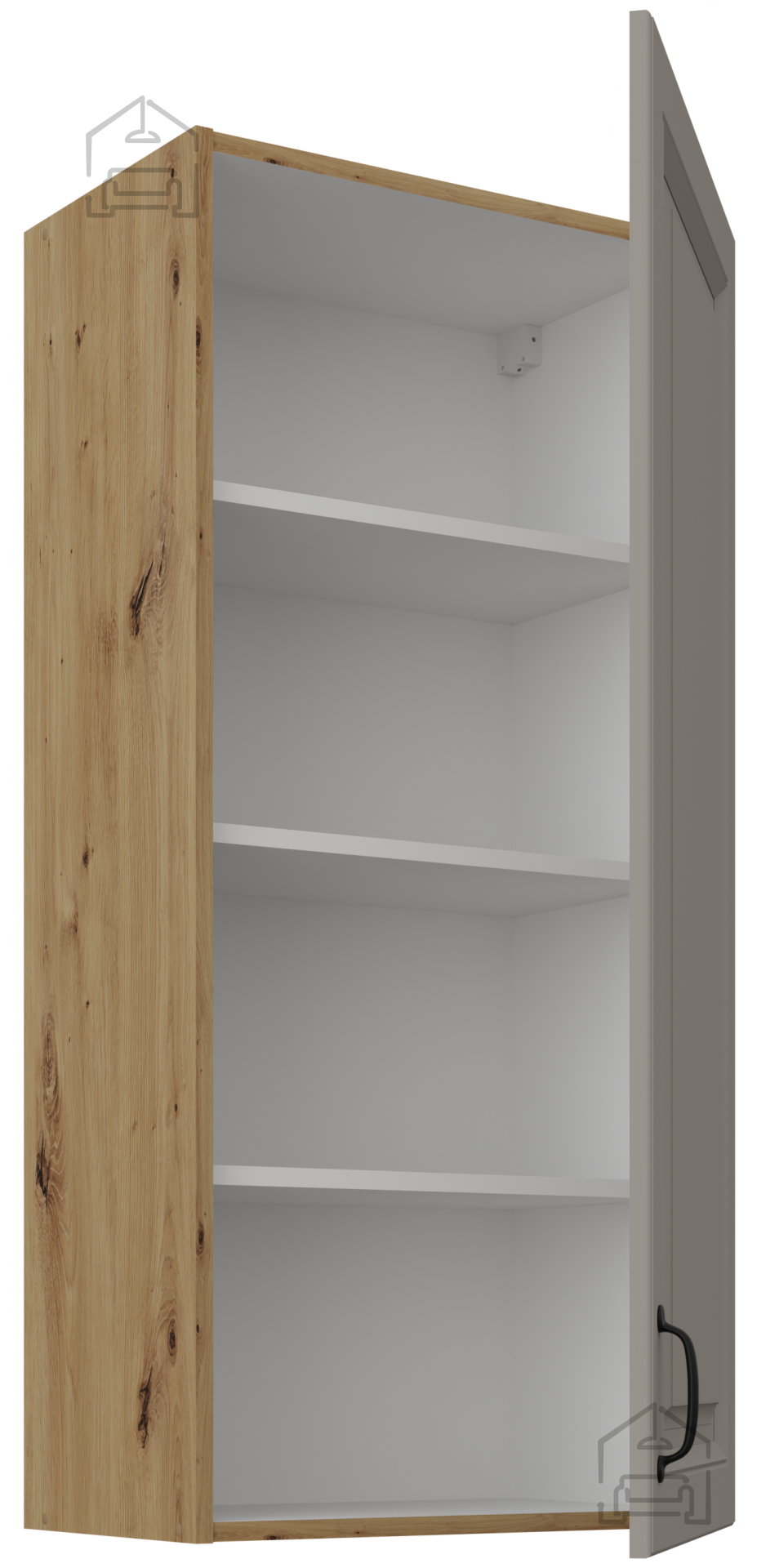 Die perfekte Kombination aus Eleganz, Funktionalität und Qualität – dieser obere Küchenschrank in der Farbkombination claygrey/Eiche artisan ist die ideale Wahl für alle, die zeitlose Ästhetik und moderne Praktikabilität schätzen. Mit präziser Verarbeitung und durchdachtem Design fügt er sich perfekt in jeden Küchenraum ein und sorgt für mehr Ordnung und Komfort im täglichen Gebrauch. Der Schrank, hergestellt in der renommierten Fabrik Stolarz-Lempert in Polen, vereint europäische Qualität und ästhetische Vollendung, die selbst den anspruchsvollsten Benutzer begeistert.