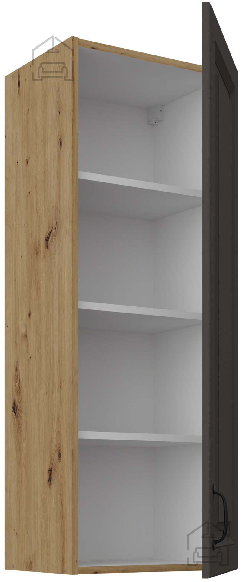In modernen Küchen, wo sich Ästhetik mit Funktionalität verbindet, ist es wichtig, Möbel zu wählen, die Schönheit, Qualität und praktische Nutzbarkeit vereinen. Genau diesen Eindruck vermittelt der Oberschrank Stilo in einer trendigen Farbkombination aus Grau/Eiche Artisan. Seine minimalistische Form, eleganten Linien und die natürliche Holzoptik fügen sich perfekt in verschiedene Einrichtungsstile ein – von skandinavischer Schlichtheit bis zur klassischen Wärme einer heimischen Küche. Er ist aus einer hochwertigen laminierten Platte gefertigt, die eine lange Lebensdauer und Widerstandsfähigkeit gegen tägliche Beanspruchungen garantiert, was ihn zur idealen Wahl für jeden modernen Haushalt macht.