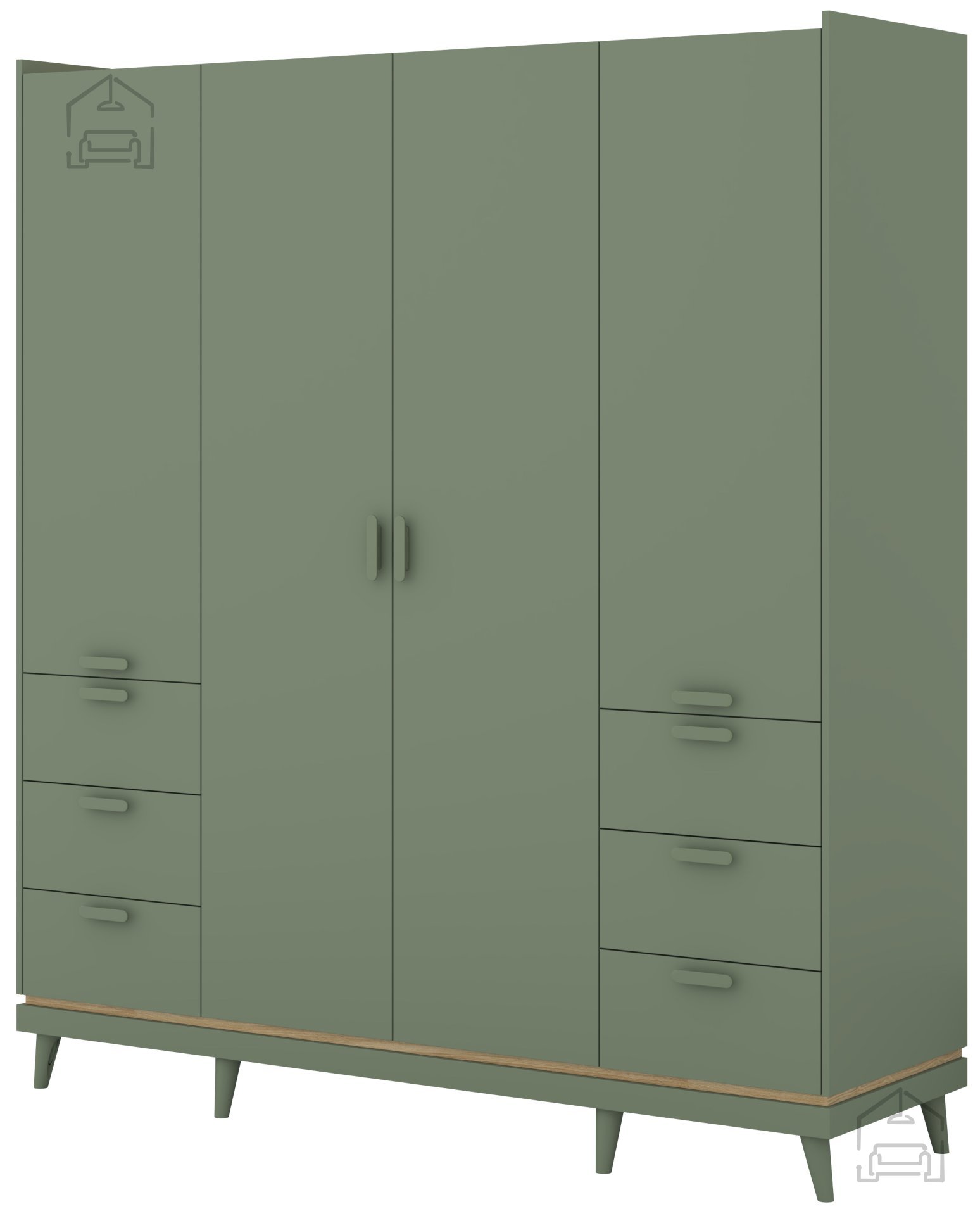 Wenn Sie Möbel suchen, die Ästhetik, Funktionalität und Qualität vereinen, ist dieser Kleiderschrank die ideale Lösung. Sein Design folgt den Trends moderner Inneneinrichtung und bewahrt dennoch eine zeitlose Eleganz, die nie aus der Mode kommt. Dank seiner farblichen Neutralität lässt er sich wunderbar mit verschiedenen Farbpaletten im Raum kombinieren, während der natürliche Eichencharakter in Verbindung mit Grün Wärme und ein Gefühl von Naturverbundenheit vermittelt.