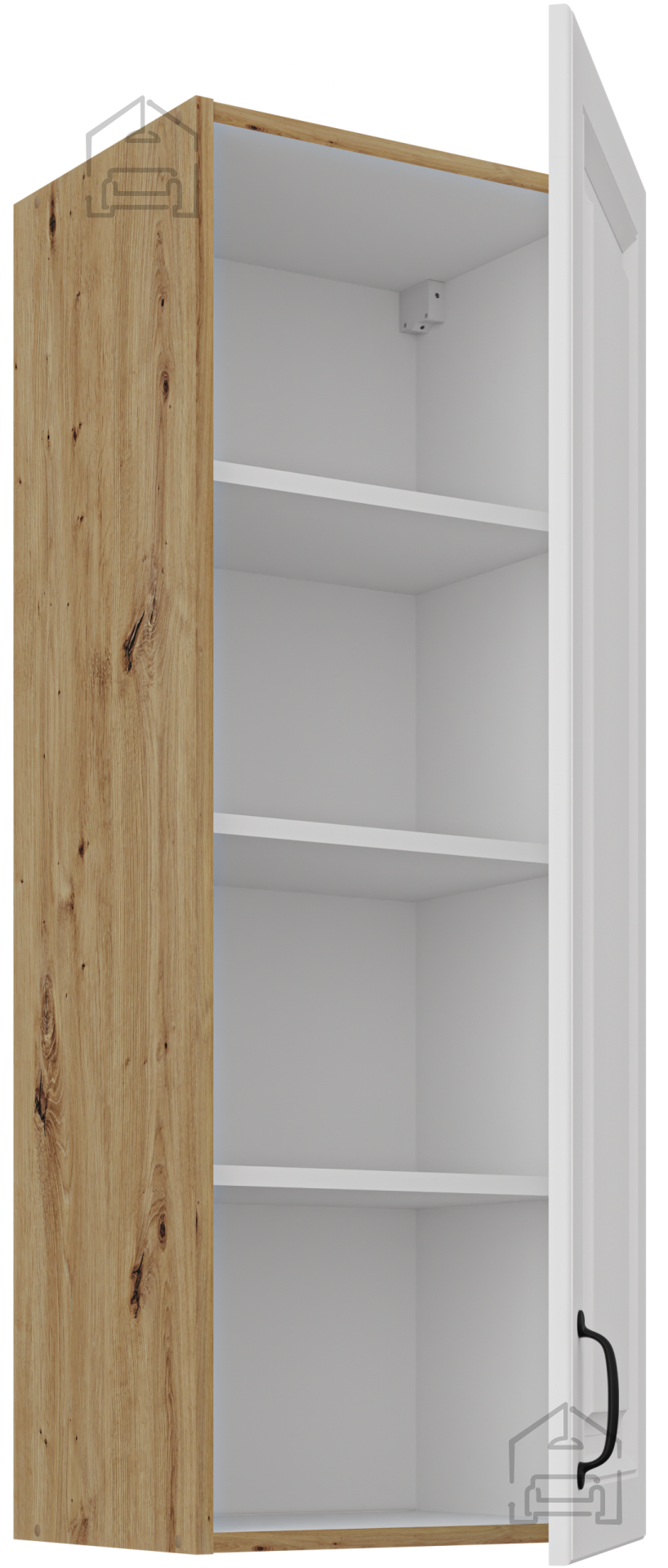Die perfekte Wahl für alle, die Eleganz, Funktionalität und hochwertige Verarbeitung schätzen. Dieser Hängeschrank bringt einen Hauch modernen skandinavischen Charmes in Ihre Küche, vereint mit der natürlichen Wärme des Holzes. Die Kombination aus sanftem Weiß und dem raffinierten Dekor der Eiche Artisan schafft ein harmonisches Gleichgewicht zwischen Licht und Textur, das sowohl zu modernen als auch zu klassischen Küchenräumen perfekt passt. Dank der durchdachten Details und hochwertigen Materialien wird der Schrank zu einem unverzichtbaren Teil Ihrer täglichen Routine – schön anzusehen und äußerst praktisch in der Anwendung.