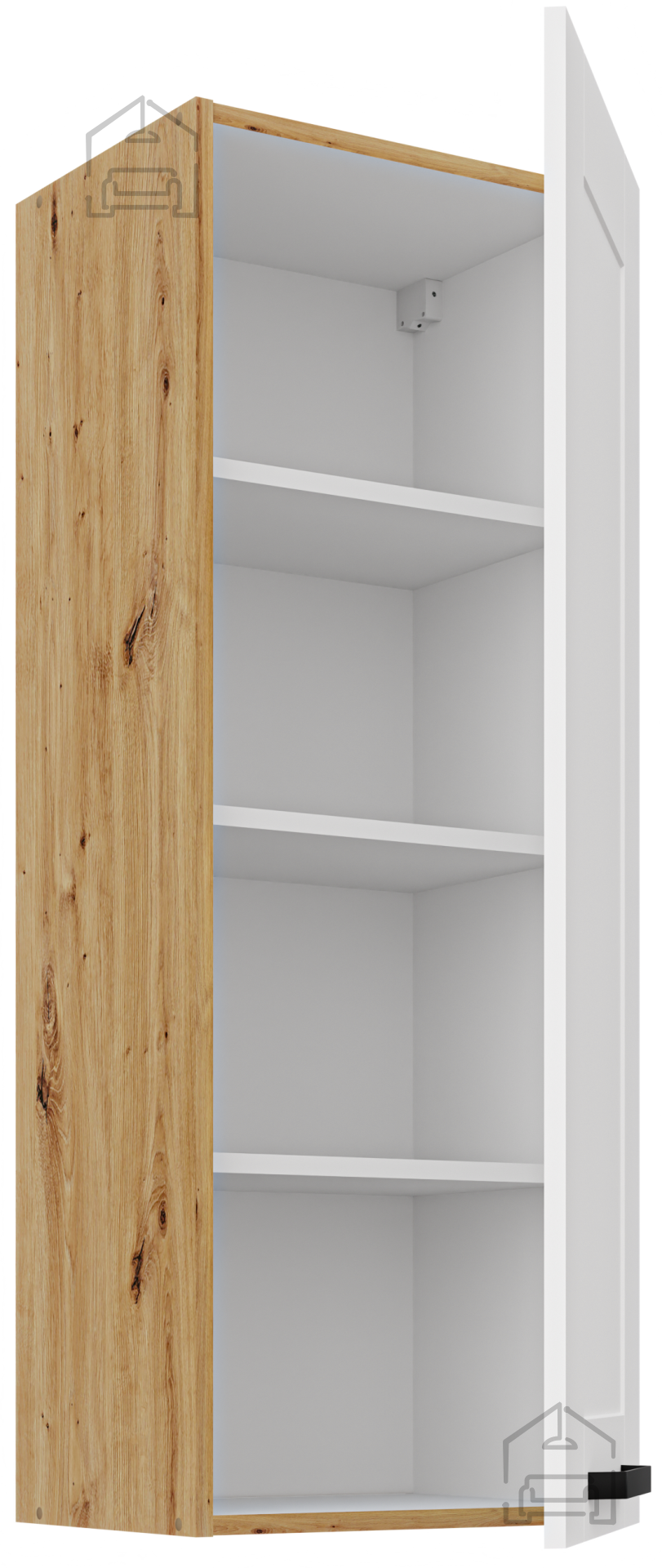 Eine elegante und funktionale Lösung für die moderne Küche, die zeitlose Schönheit mit hoher Verarbeitungsqualität vereint – das ist die perfekte Ergänzung, die Ihrer Küche Wärme, Ordnung und ästhetische Vollkommenheit verleiht. Der Oberschrank Luna in der Farbkombination Weiß/Eiche Artisan stellt das ideale Gleichgewicht zwischen klassischer Eleganz und modernem Minimalismus dar. Seine schlichten Linien und natürlichen Farbtöne schaffen ein angenehmes Ambiente, in dem Sie sich jeden Tag zuhause fühlen werden.