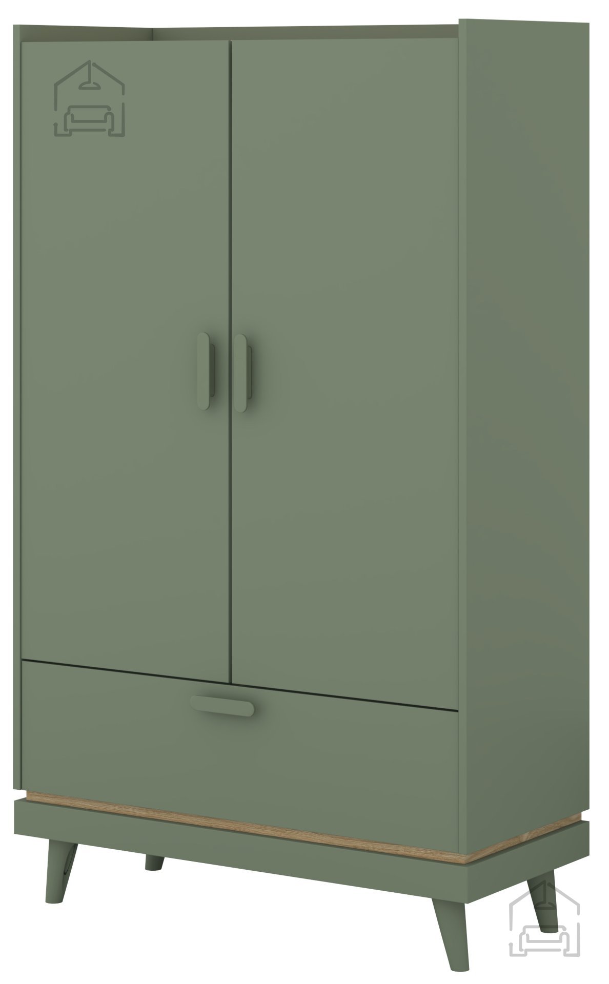 Die Farbkombination aus verblasstem Grün, geölter Eiche und sanftem Grün schafft ein Gefühl von Wärme und Ruhe. Dieser Grünton in Kombination mit der natürlichen Holztextur fügt sich perfekt in jedes Interieur ein – sei es im Wohnzimmer, Schlafzimmer oder im Flur. Der Schrank bringt die Frische der Natur in Ihr Zuhause und bewahrt gleichzeitig die minimalistische und elegante Linie, die für den skandinavischen Stil typisch ist und in modernen Wohnungen in Wien, Graz oder Salzburg immer beliebter wird.