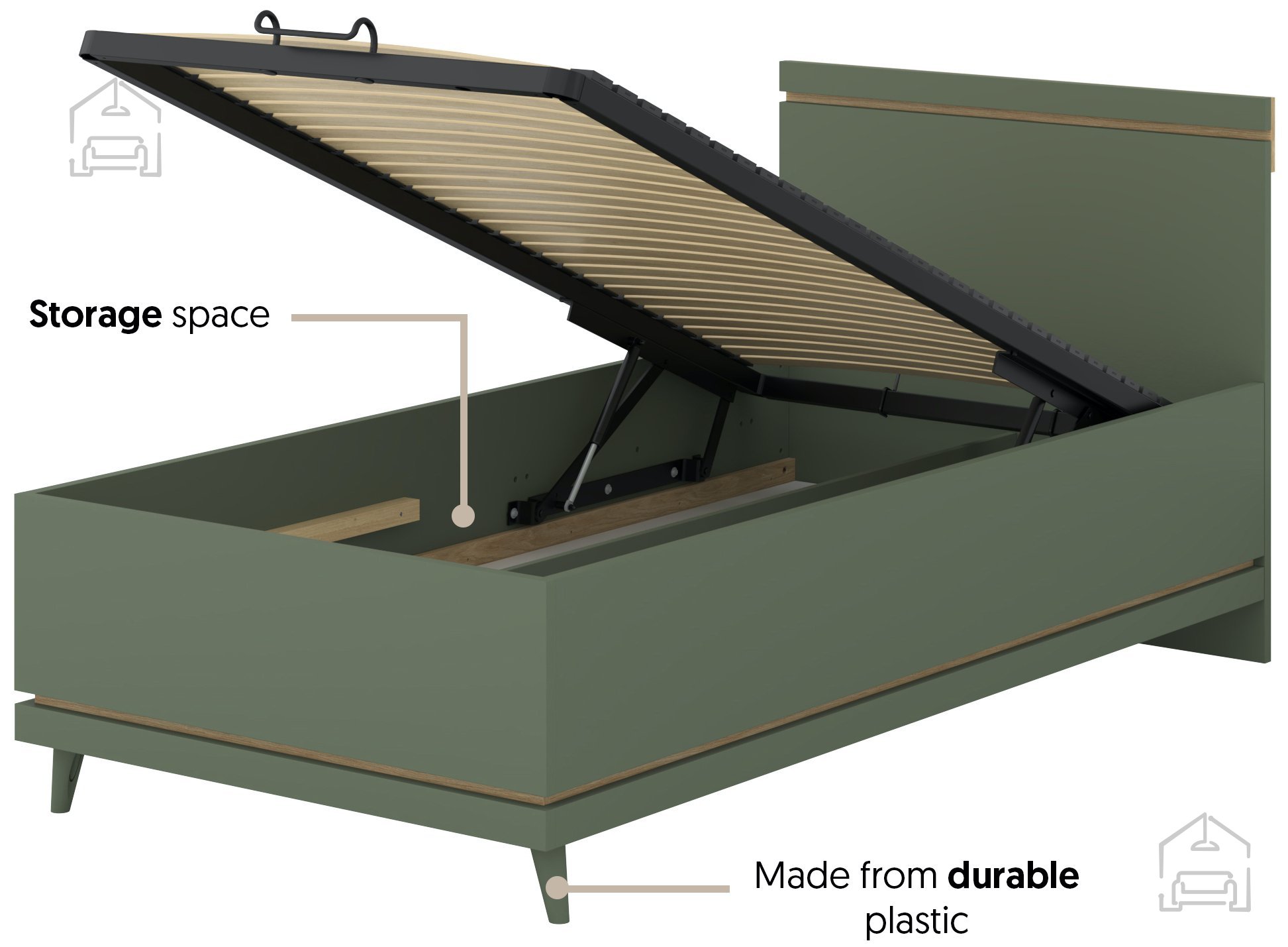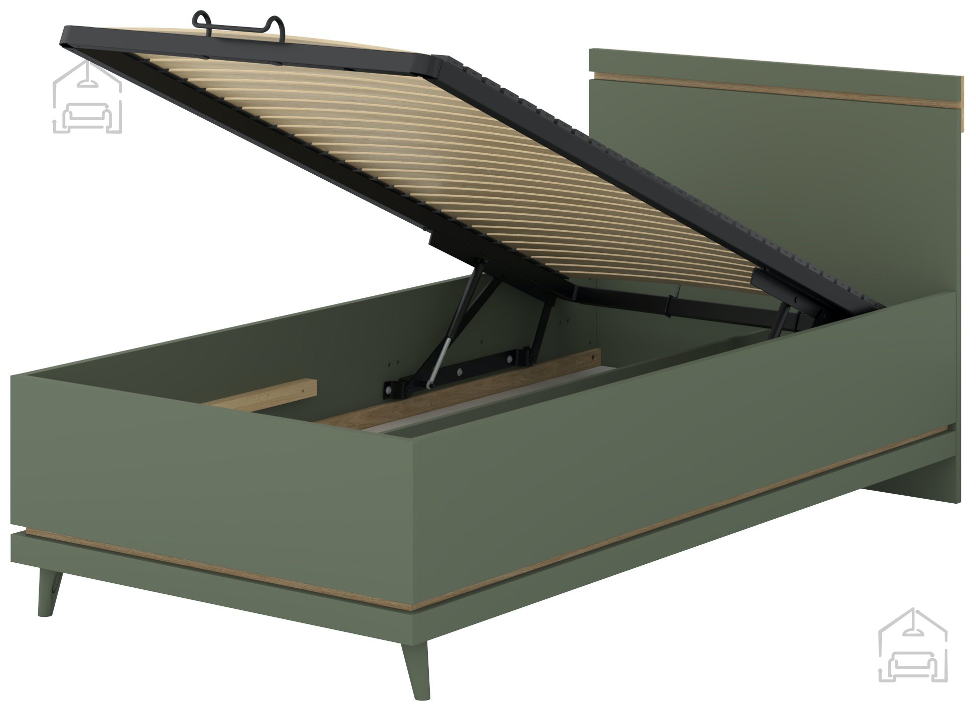 Jedes Detail ist sorgfältig durchdacht, um Ihnen maximalen Komfort und Benutzerfreundlichkeit zu bieten. Das Hebesystem arbeitet leise und reibungslos, wodurch es sich auch für kleinere Räume bestens eignet. Der Stauraum ist großzügig, klar strukturiert und vollständig in die Konstruktion des Bettes integriert, was ein harmonisches Gesamtbild gewährleistet. Mit seinen Maßen von 105x200x100 cm ist dieses Bett die ideale Wahl für Jugendzimmer, Studios oder kleinere Schlafzimmer, in denen jeder Zentimeter zählt. Trotz seiner kompakten Größe bietet es alles, was Sie von einem modernen Bett erwarten: Stabilität, Zuverlässigkeit und Stil, der begeistert.